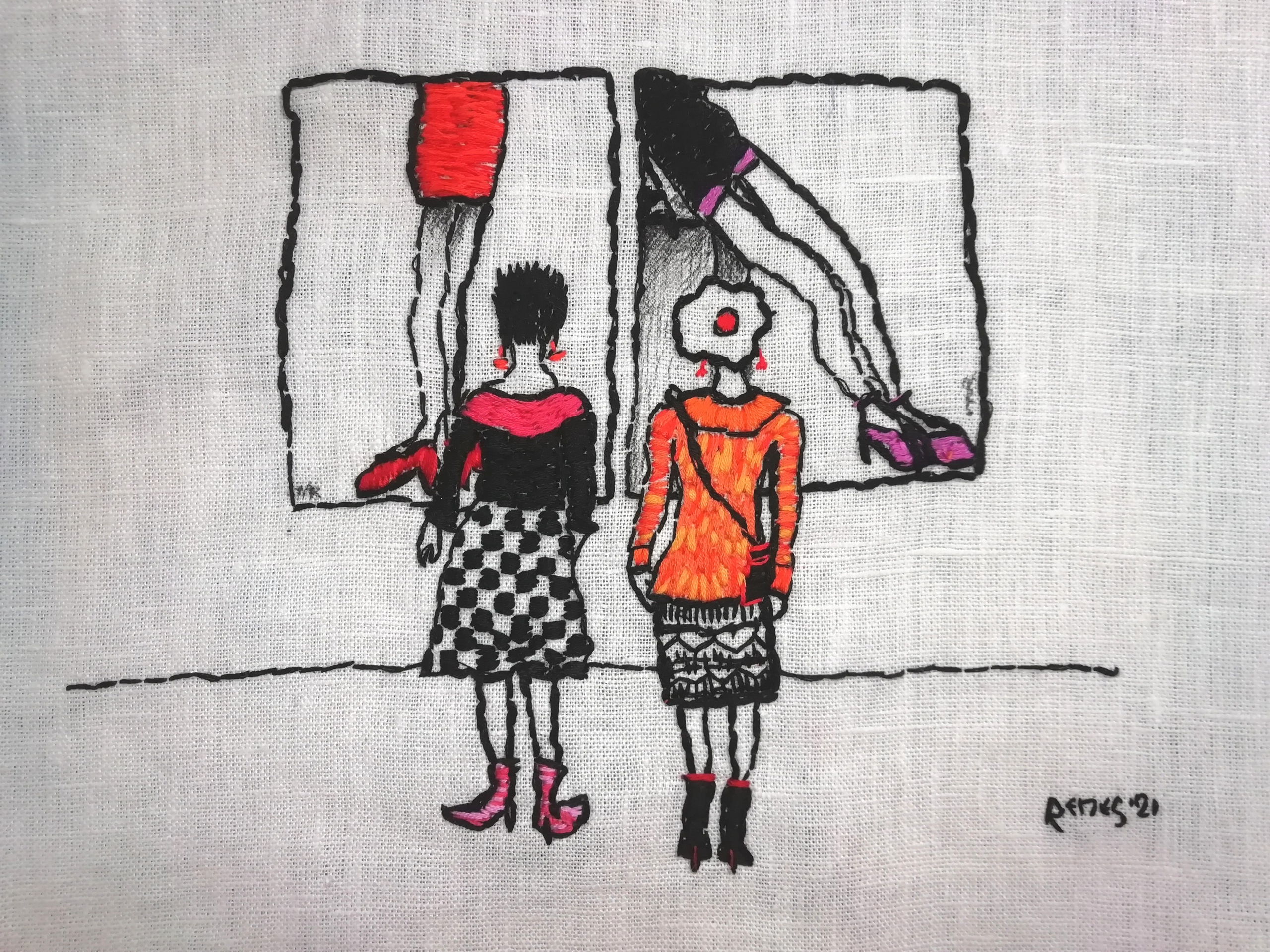 borduurwerk gebaseerd op mijn getekende dagboek, in de serie sweet memories ter nagedachtenis van mijn in 2020 overleden hartsvriendin
