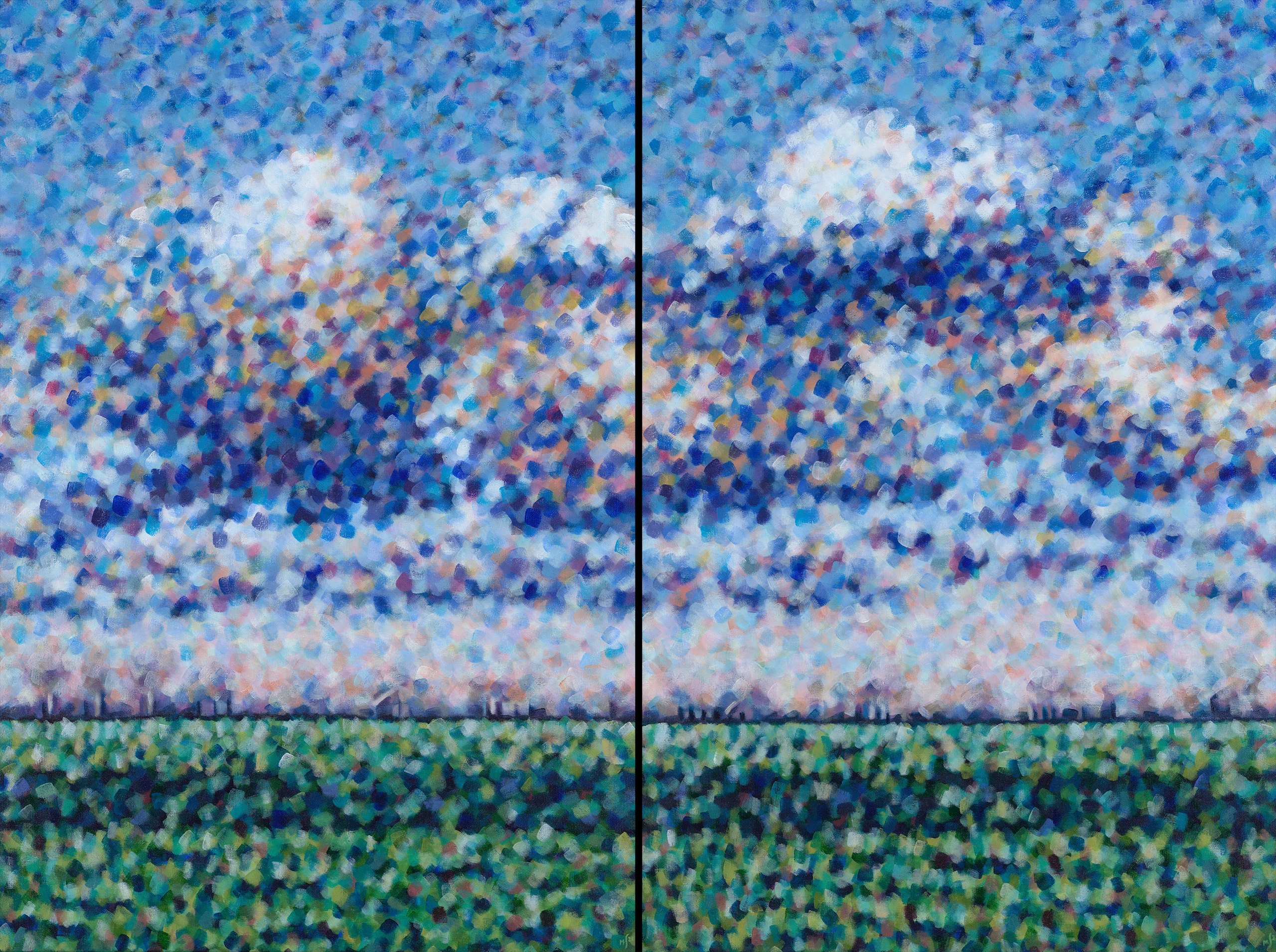 Modern Wolken Tweeluik Dutch Lucht Sky Clouds Wolkenlucht Impressionisme Pointillisme Infinite Oneindige Diptych Polderlucht