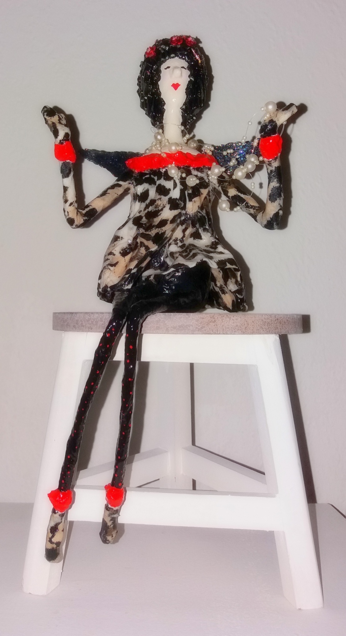Inspiratiebronnen zijn vrouwen, mythologie, kleuren, symboliek en verhalen van vele culturen zijn een belangrijk aspect in haar sculpturen, happy angels en lampen. Papier-maché in allerlei vormen.
