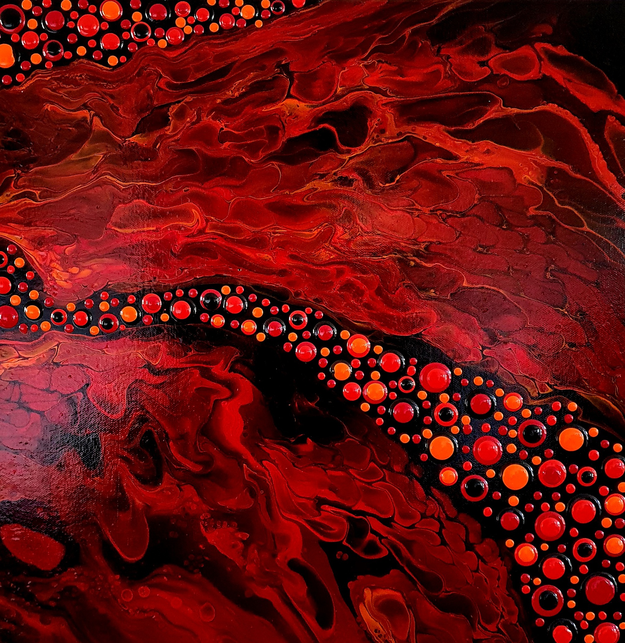 Rood Acryl Canvas Red Dots Pouring Blobs