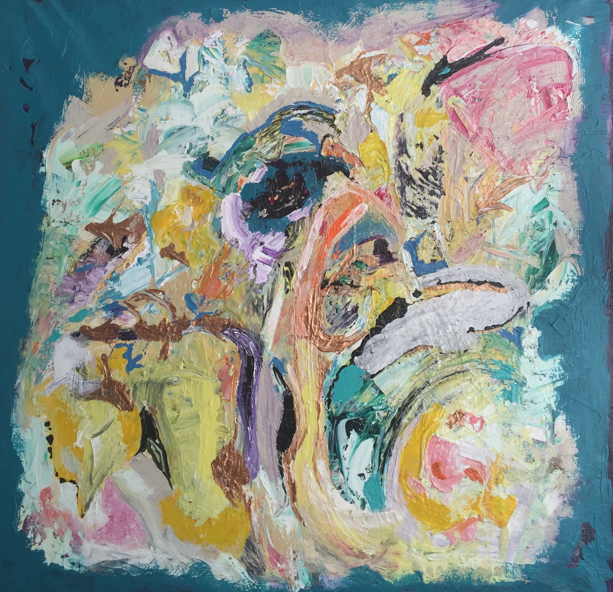 Léonce Lemmens schildert abstracte schilderijen bestaande uit lagen van opgebouwde kleuren en gemengde texturen. Ze werkt met acryl, olie, collages en mixed media.