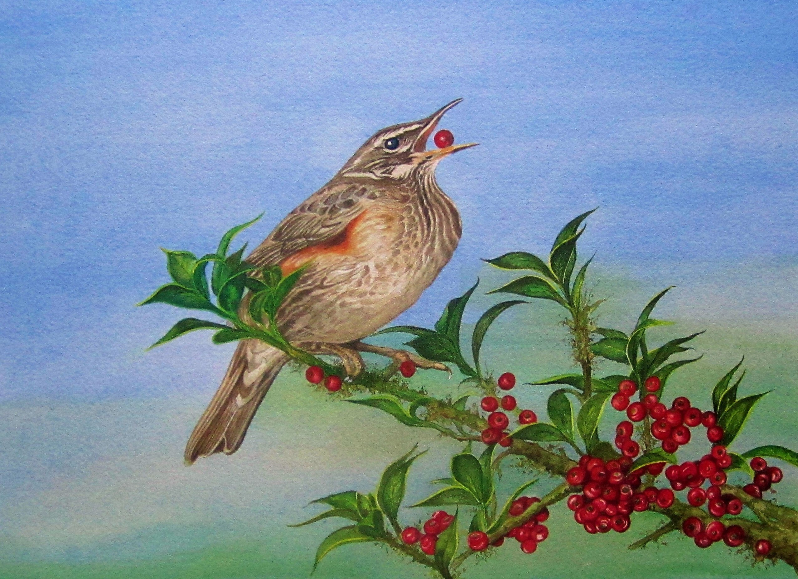 Vogel Vogels Bes Berry Koperwiek Redwing Grive Mauvis Rotdrossel