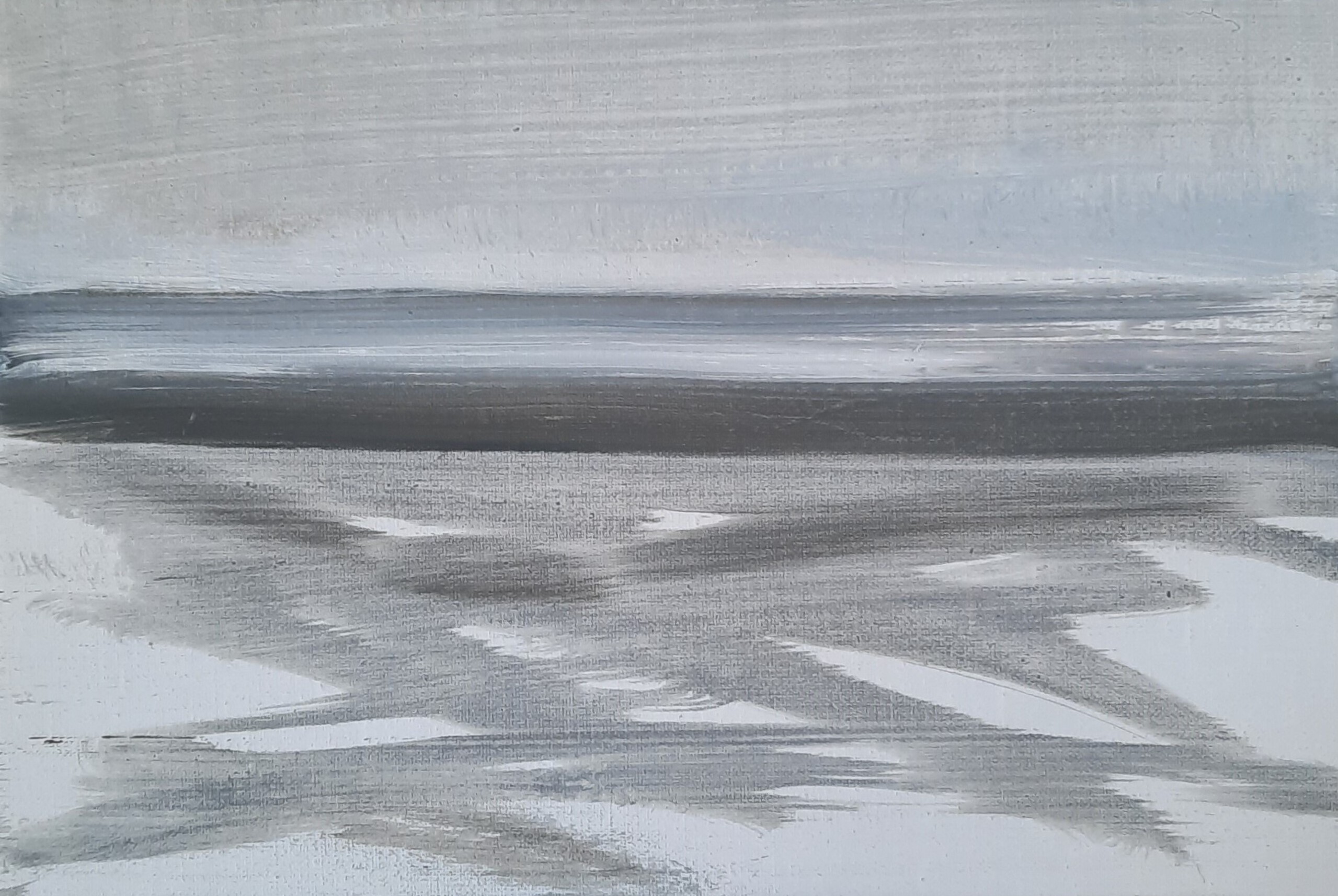 Zee Landschap Wolken Klein Water Canvas Hedendaagse Kunst Natuur Olieverfschilderij Serie Vergezicht Wind Aarde Land Leegte Rust Horizon Het Wadden Nederland Formaat Friesland Wad Skyline