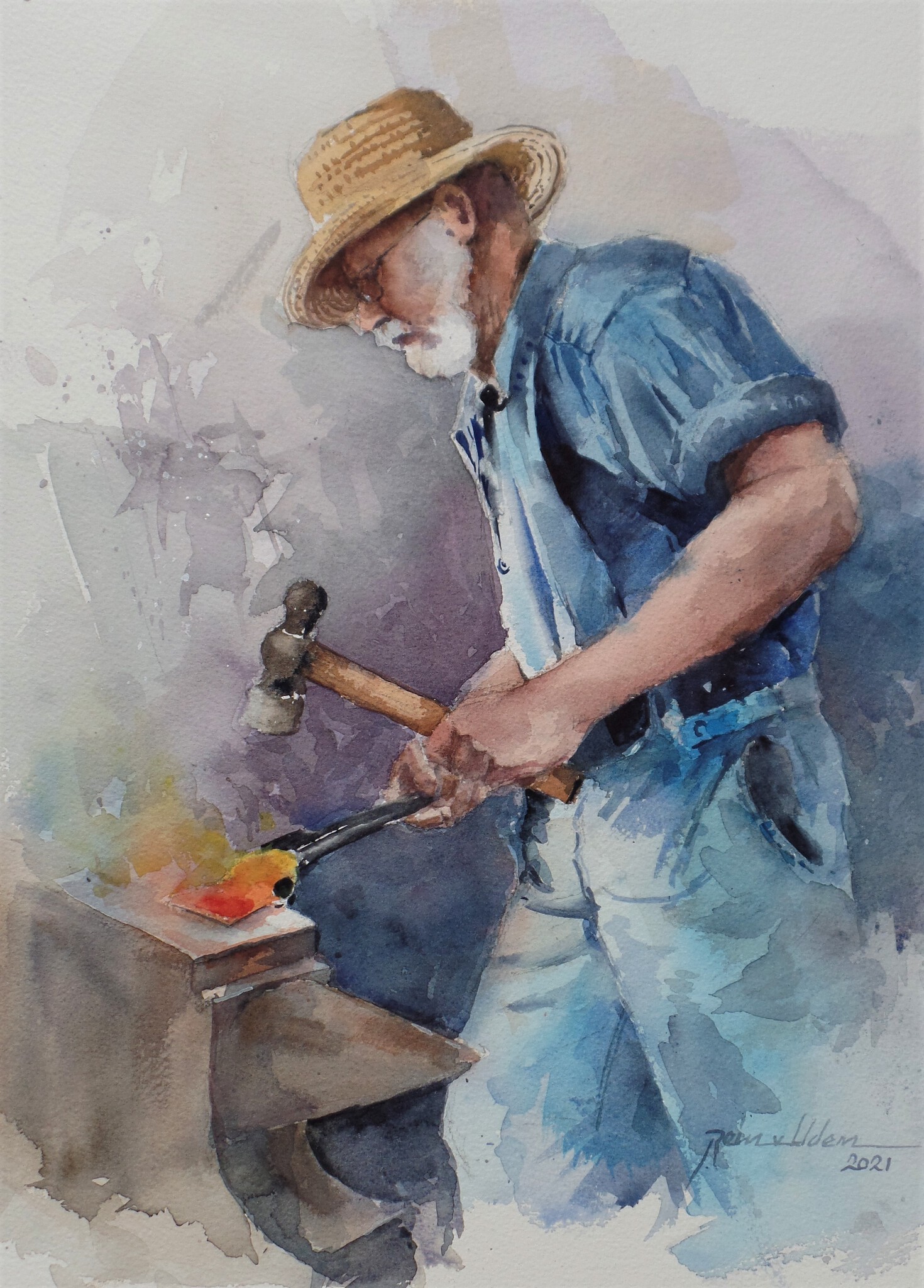 Smid Vuur Ijzer Aquarel Vakman Werkplaats