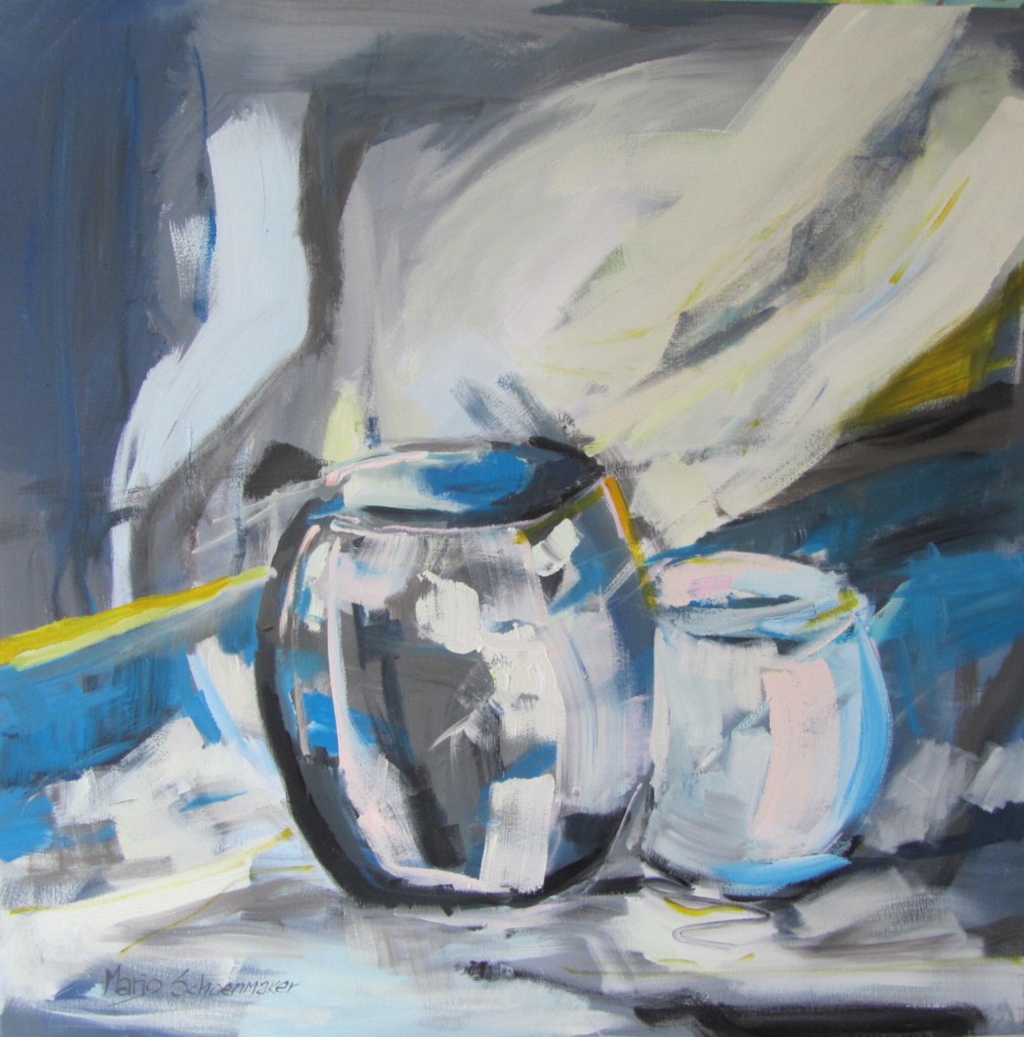Stilleven Kleurrijk Kleur Vlak Vorm Keuken Voorwerp Blauw Geel Fris Acryl Groot Formaat