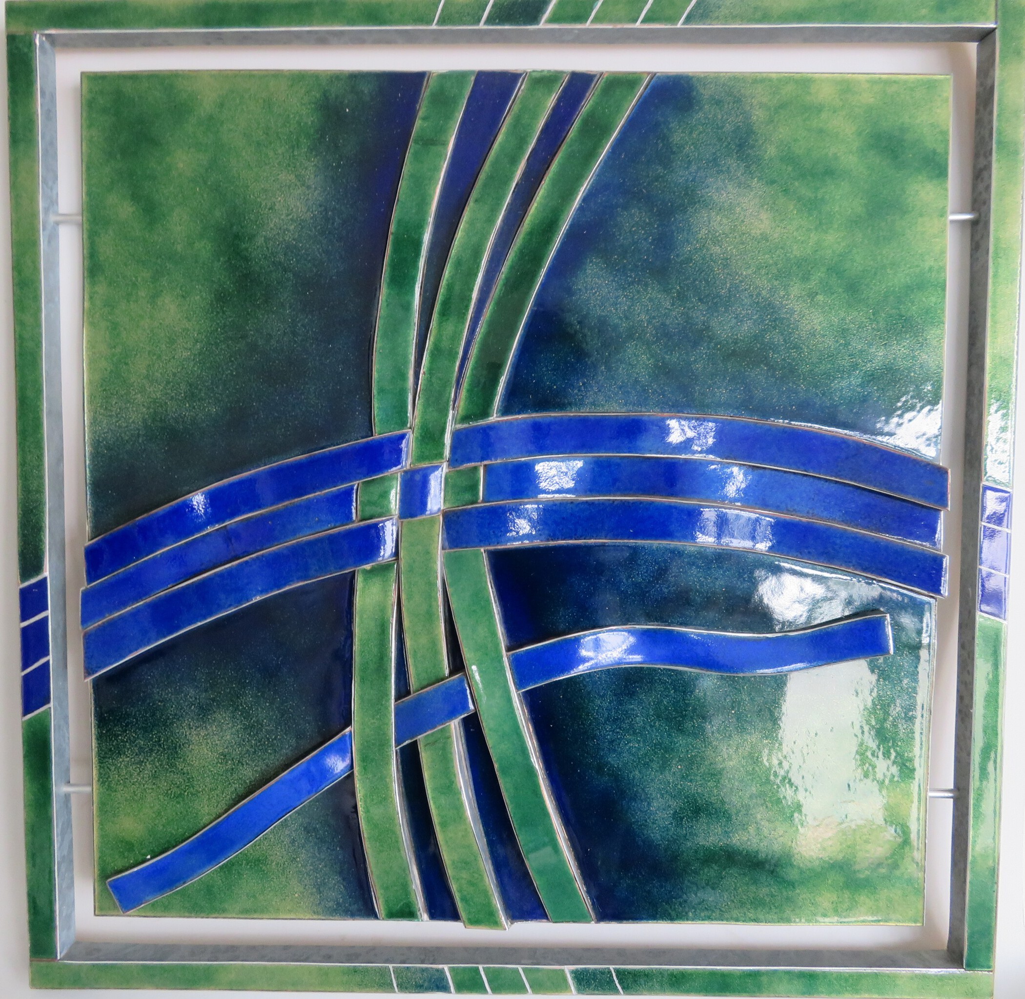 Ik ben emailleur en maak wandpanelen en reliëfs. Vaak verwerk ik er ook gefused- of brokken glas in. De zijkanten en holtes van de reliëfs werk ik af met verouderd zink.