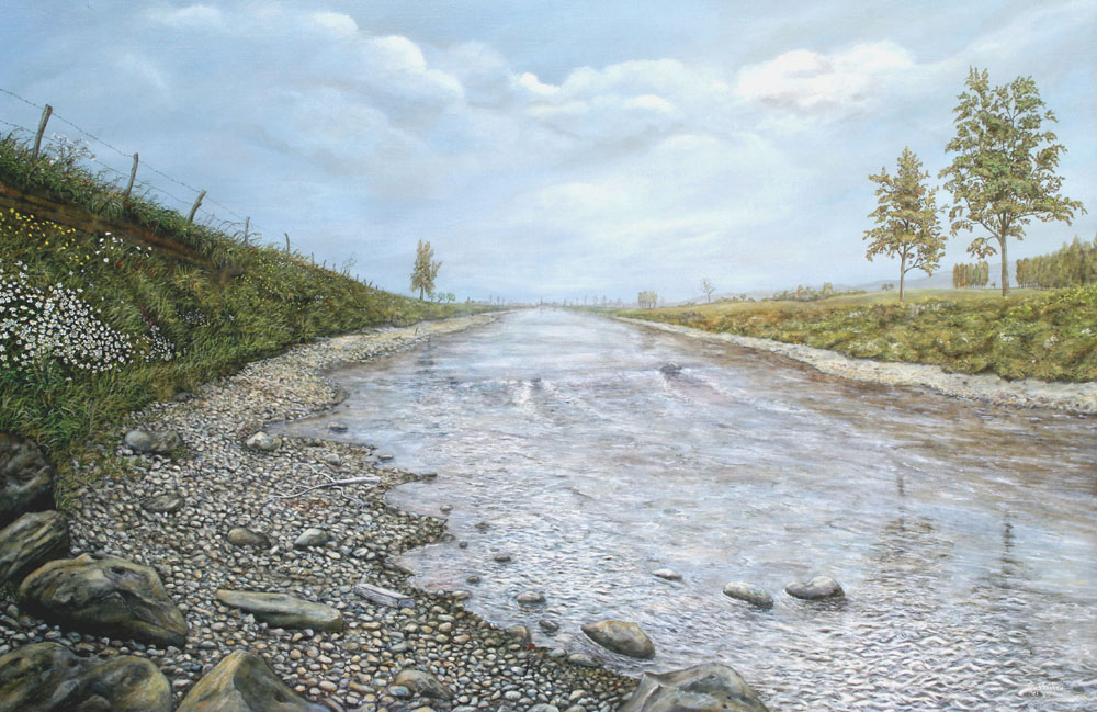 Ik schilder alleen het Zuid Limburgs landschap, bij voorkeur zijn dat hoogstambomen, heggen en de Maas met haar zwerfkeien.
