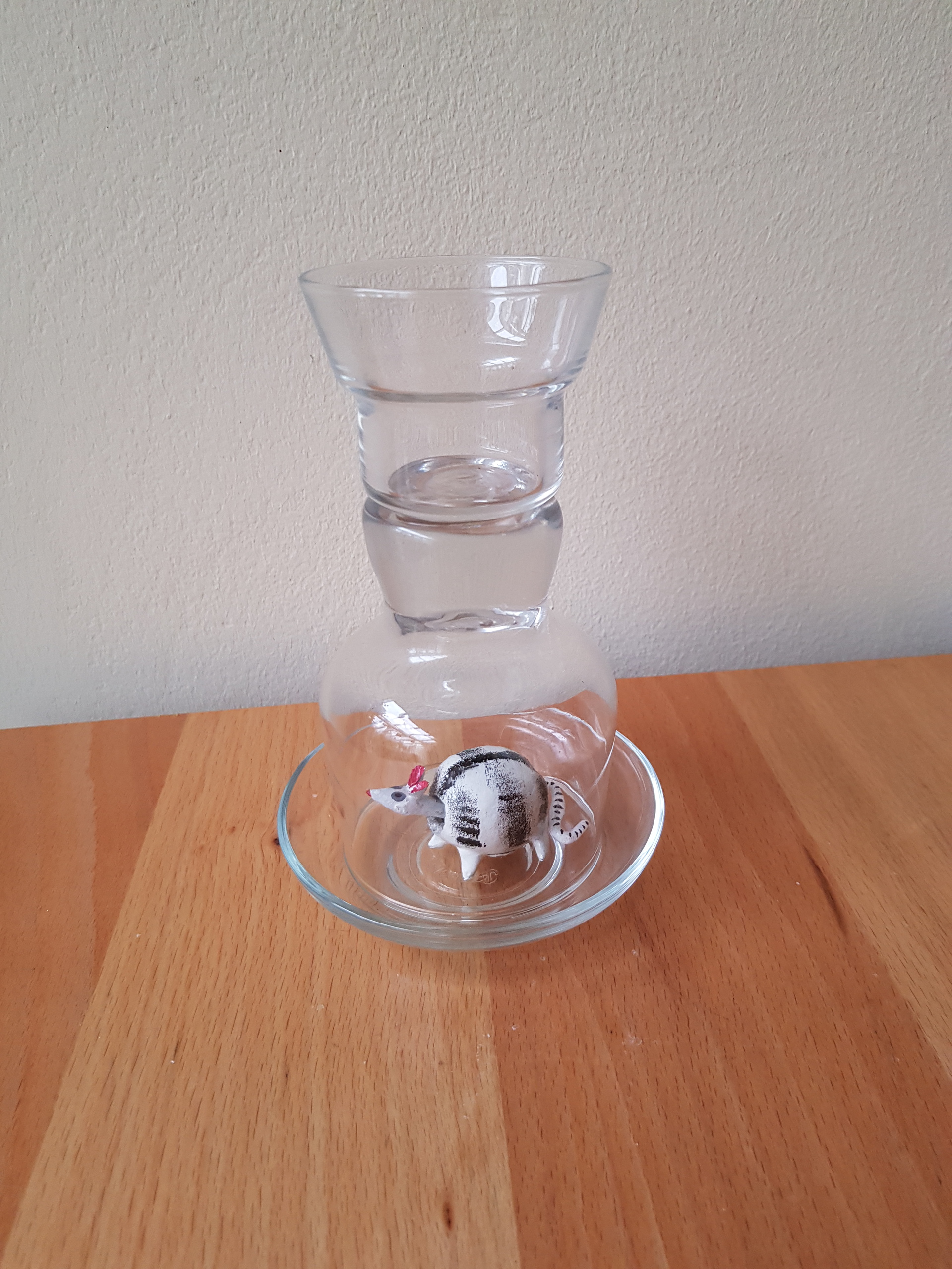Ook al is dit beestje gevangen in glas, het blijft zijn koppie nieuwsgierig bewegen.