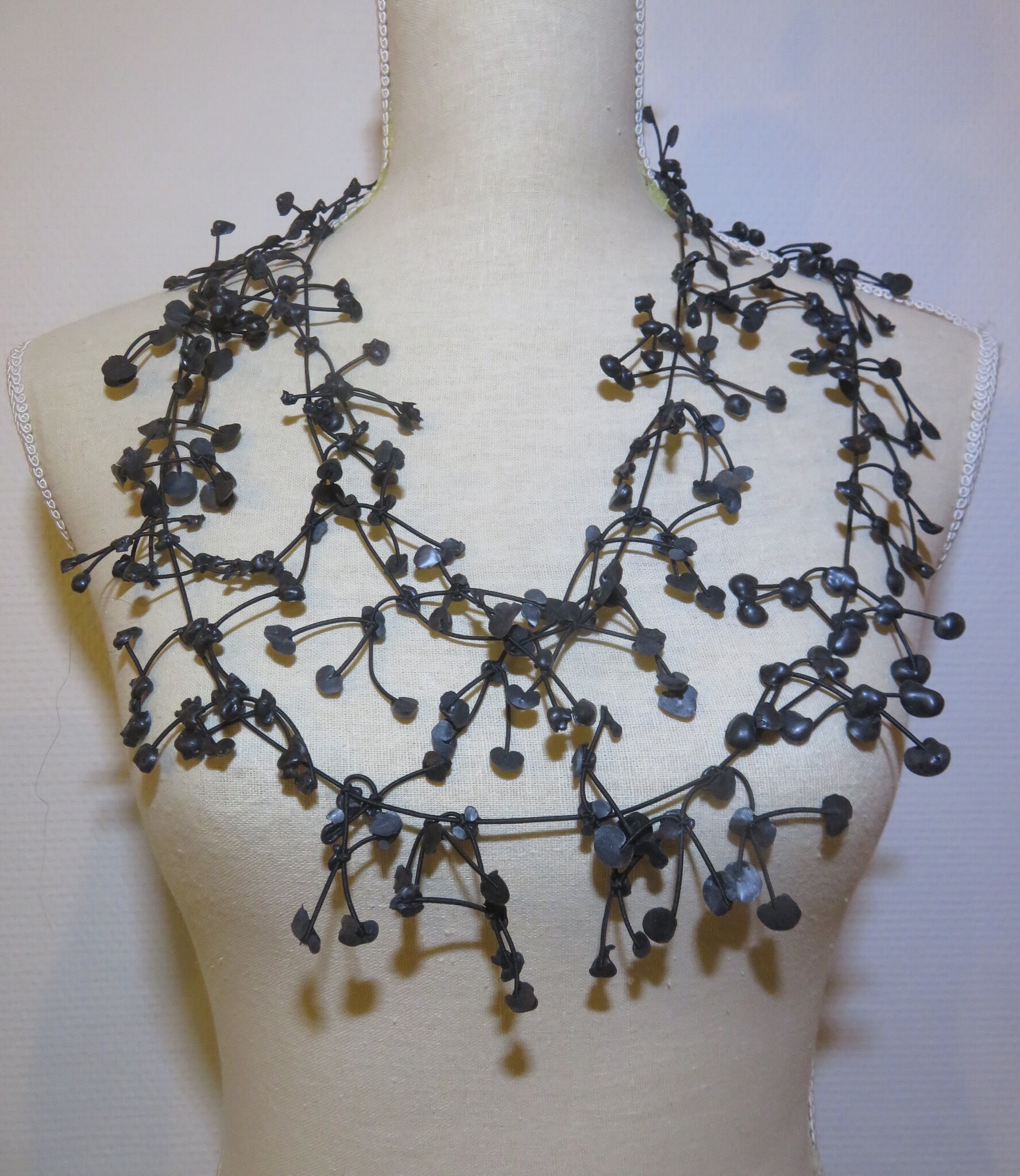 Ketting met rubber in de kleur groen zwart, De ketting is handgemaakt en dus uniek. Zeker met de feestdagen een mooi effect op een egale jurk of bloese. Een echt statement ketting. Ook een leuk cadeau voor Valentijn.