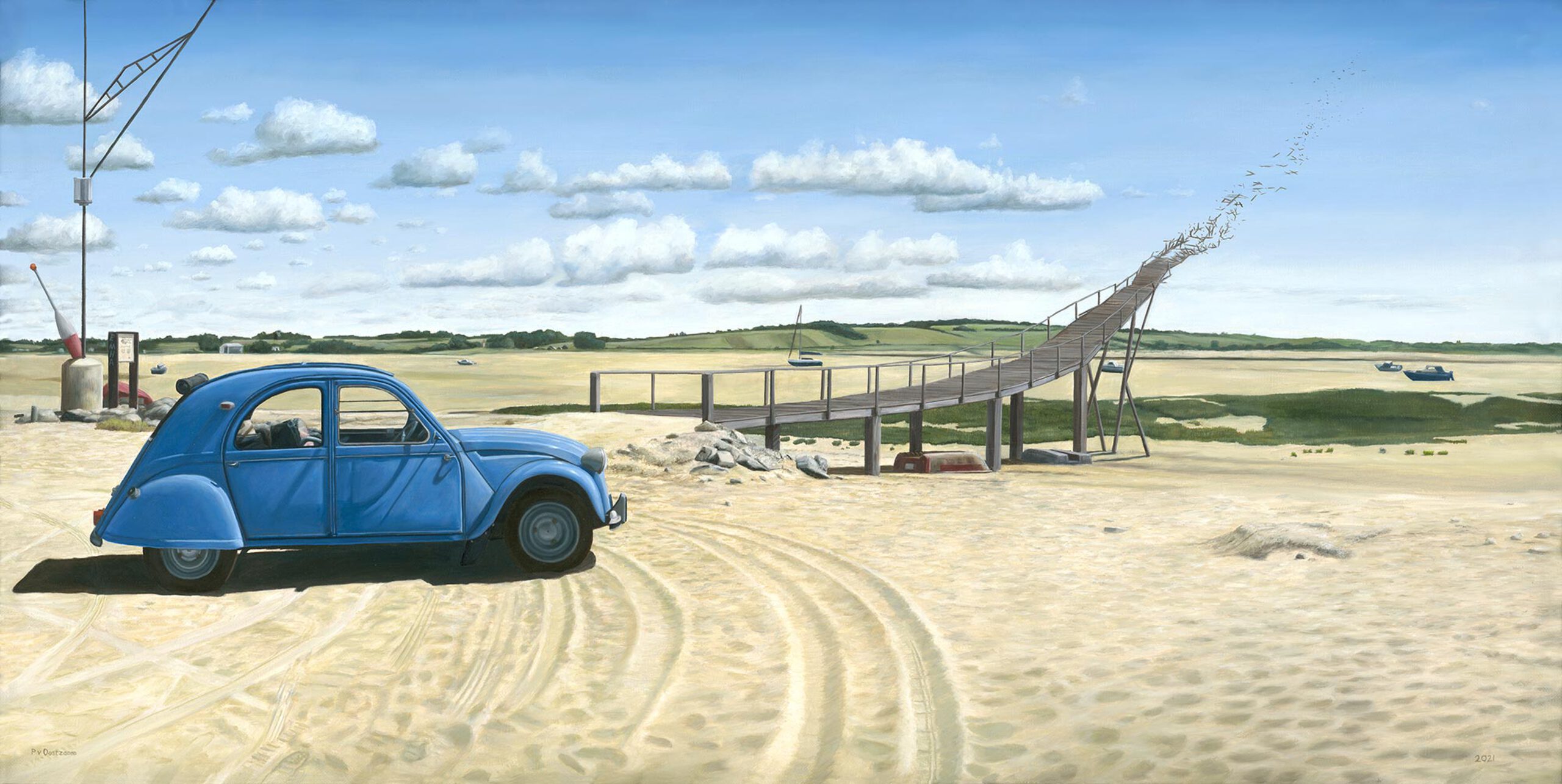 Zee Strand Blauw Wolken Lucht Brug Zand Reizen Eend 2cv
