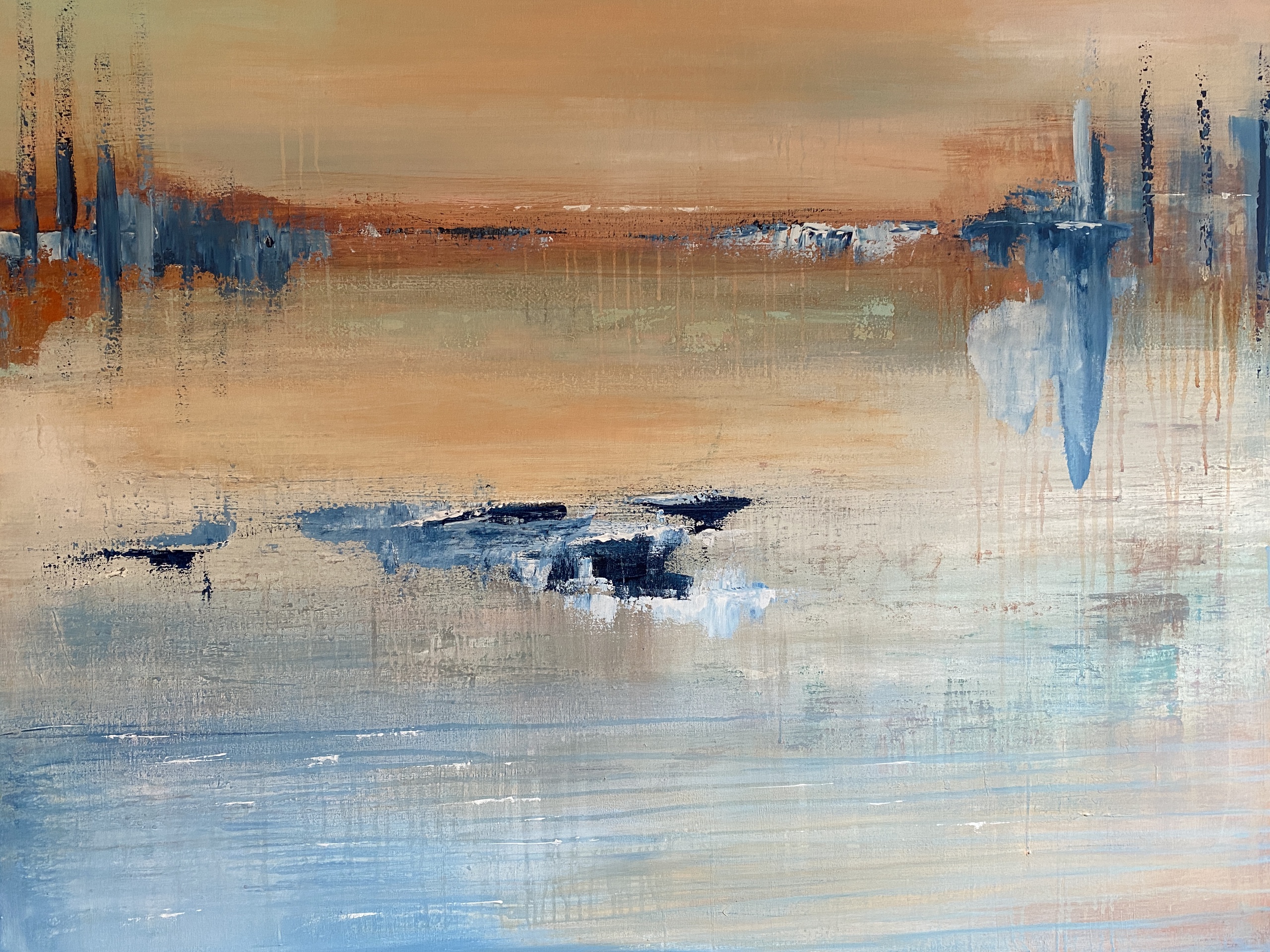 Pruisisch blauw Landschappen zijn mijn favoriete schilderijen, wat ik zie is een abstract schilderij en een skyline met gebouwen en torens, maar misschien zie je meer, de rust over het water dat zich uitstrekt tot aan de horizon ........ Als ik naar mijn schilderij kijk, voel ik me gelukkig en vrij. Maar het belangrijkste is wat je ziet ...... Gewicht schilderij 3,4 kg, Klaar om op te hangen, gesigneerd op de achterkant van het schilderij. Maat: H 100 cm x B 120 cm x D 4 cm