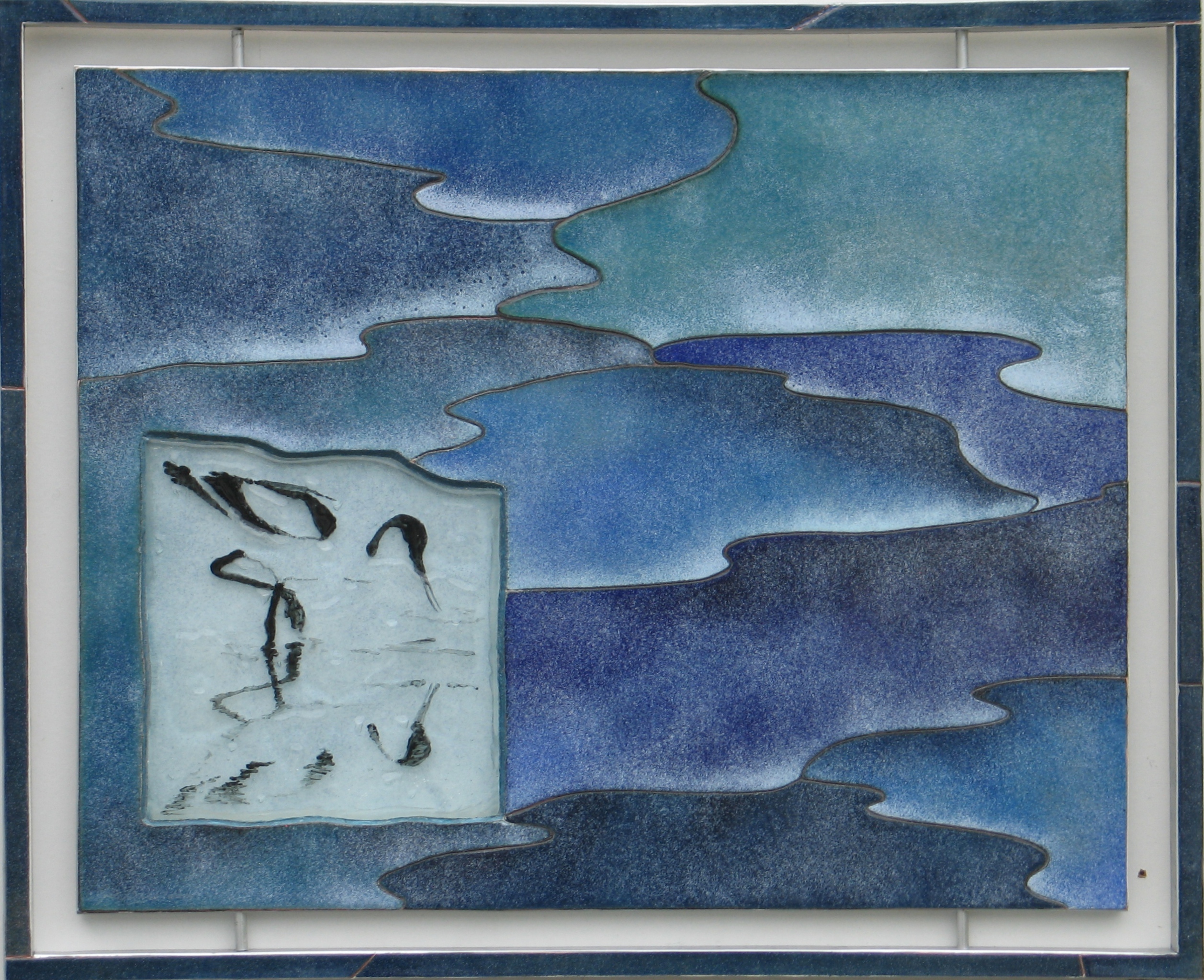 Ik ben emailleur en maak wandpanelen en reliëfs. Vaak verwerk ik er ook gefused- of brokken glas in. De zijkanten en holtes van de reliëfs werk ik af met verouderd zink.