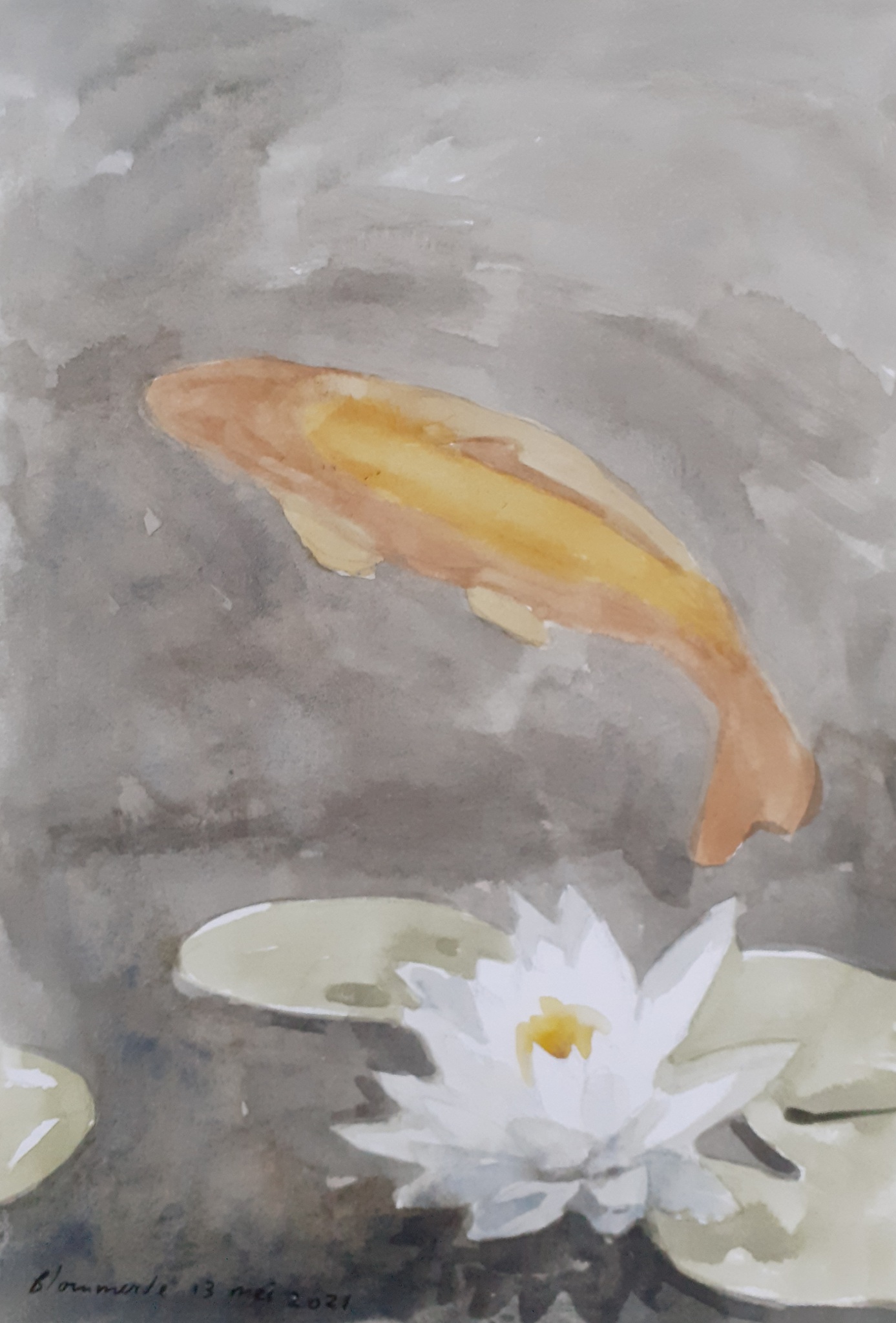 Figuratief Vis Dier Aquarel Realistisch Lotus Karper