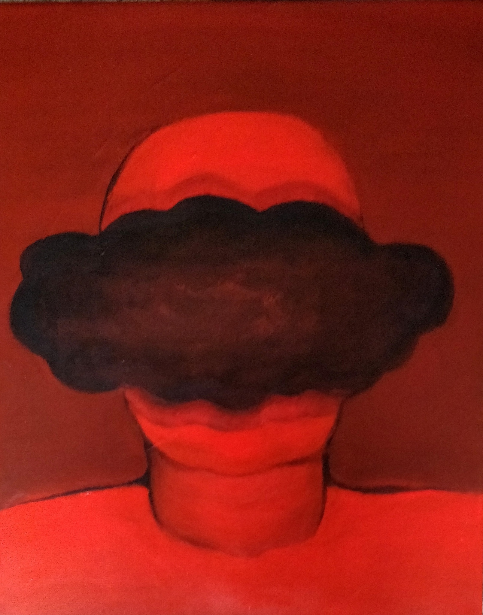 Een van een serie van 3 (los te koop). Gemaakt in coronajaar 2020 met de gedachte, dat velen in afzondering en vol radeloze gedachten (rood) niet weten wat de toekomst brengen gaat.