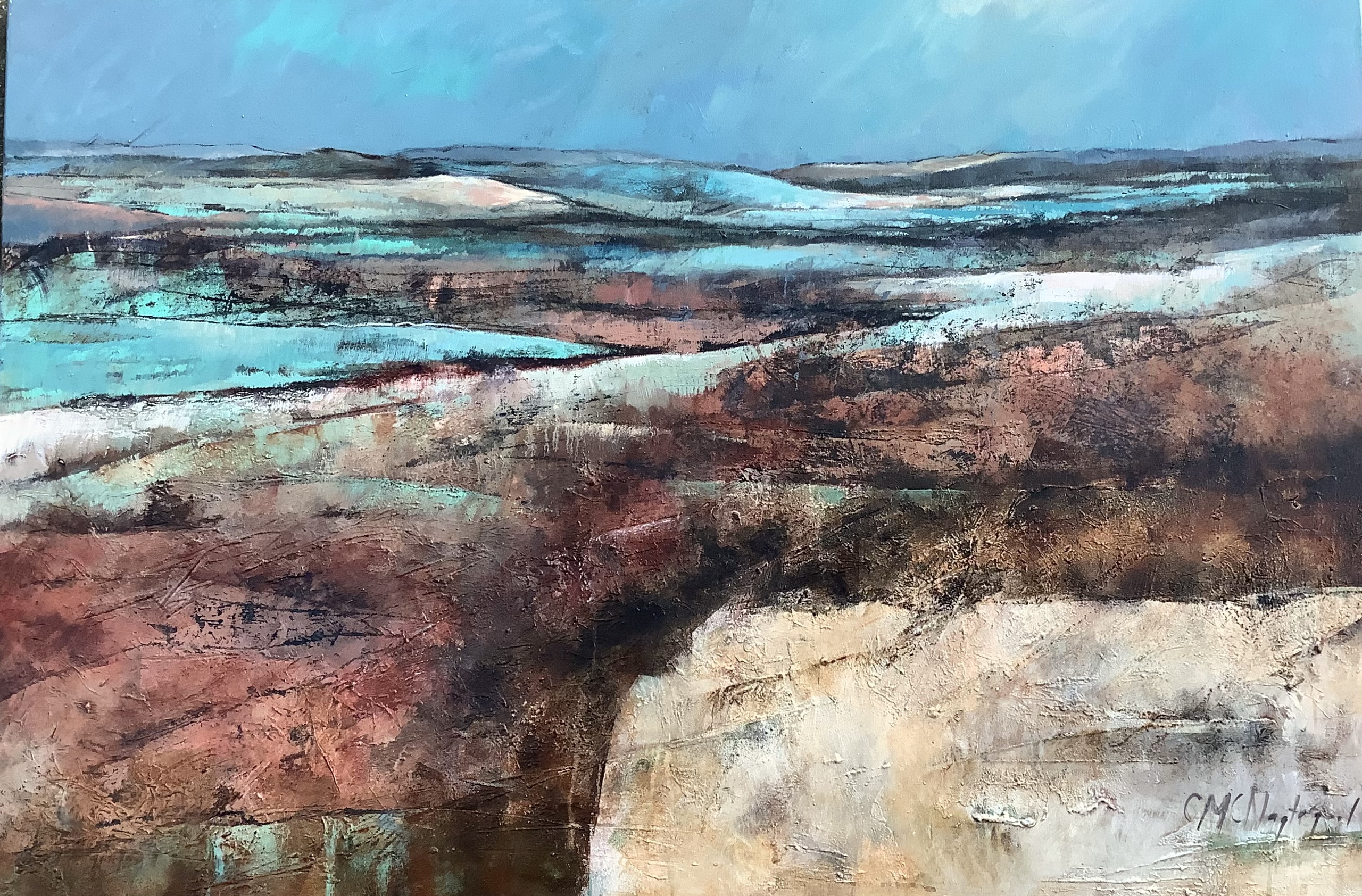 Een schilderij waarin je het landschap voelt en geniet van de eindeloosheid en leegte van de vlakte.