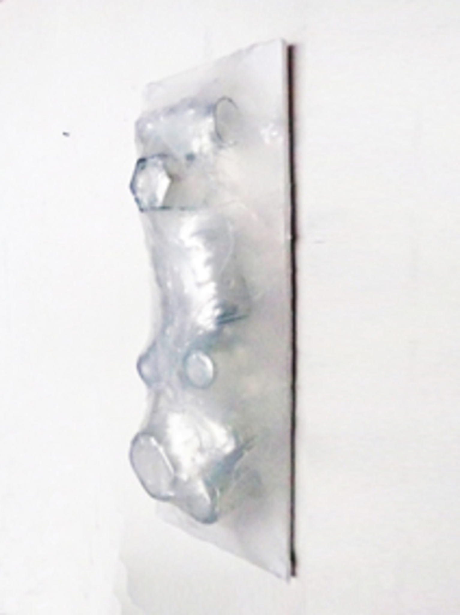 3 dimensional wall piece, used glassware and shrink wrap on wood.