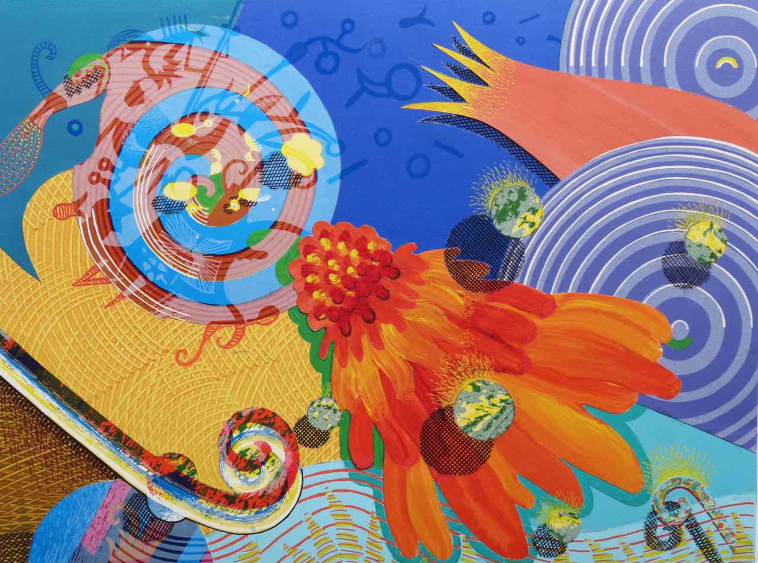 Mijn werk is zeer kleurrijk. Ik balanceer graag op de grens tussen figuratief en abstract, waarbij ik mijn eigen droomwereld creeer. Mijn inspiratie haal ik uit de natuur en het materiaal.