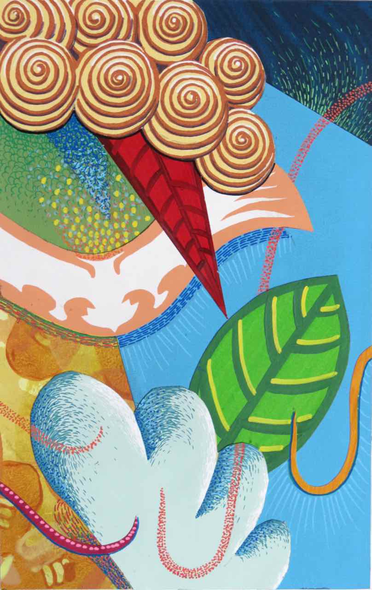 Mijn werk is zeer kleurrijk. Ik balanceer graag op de grens tussen figuratief en abstract, waarbij ik mijn eigen droomwereld creeer. Mijn inspiratie haal ik uit de natuur en het materiaal.