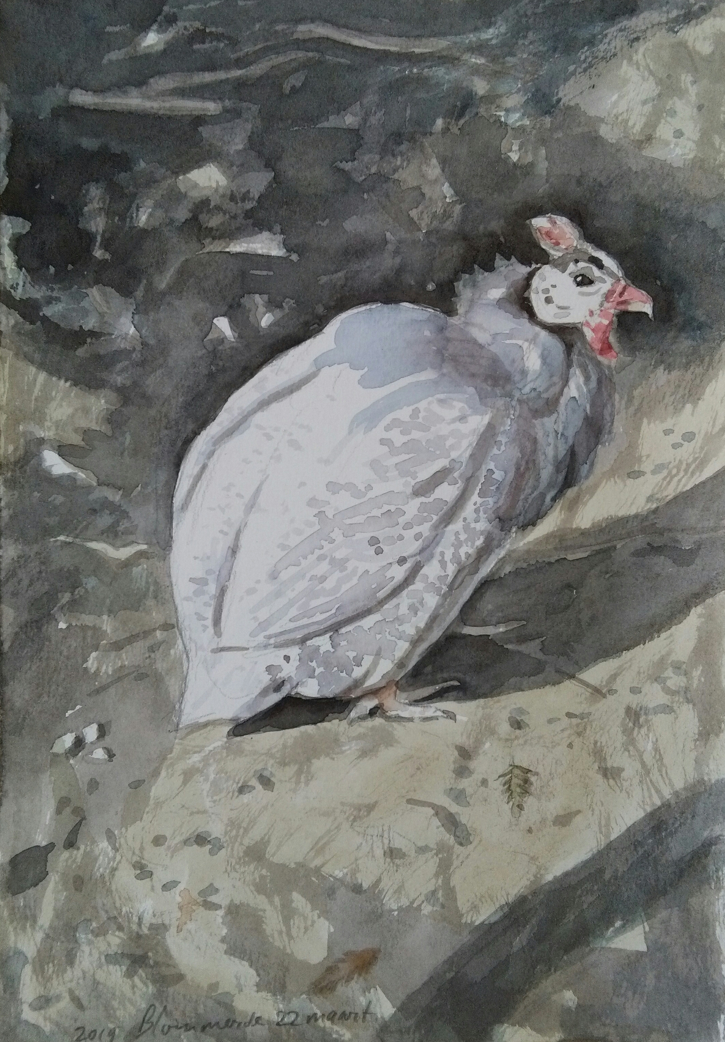 Aquarel van een parelhoen
