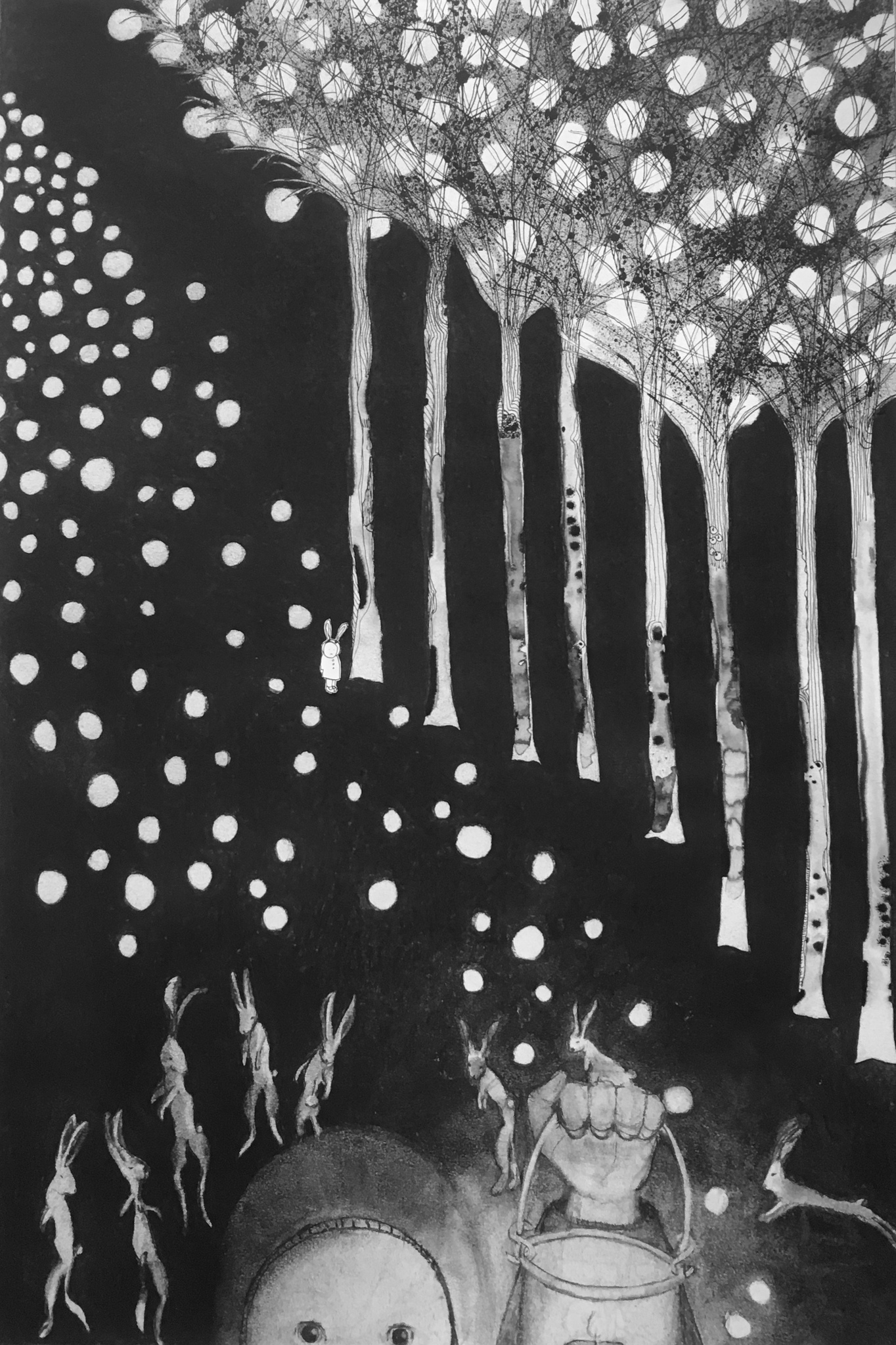 OI-inkt, houtskool 70 x 100 cm
