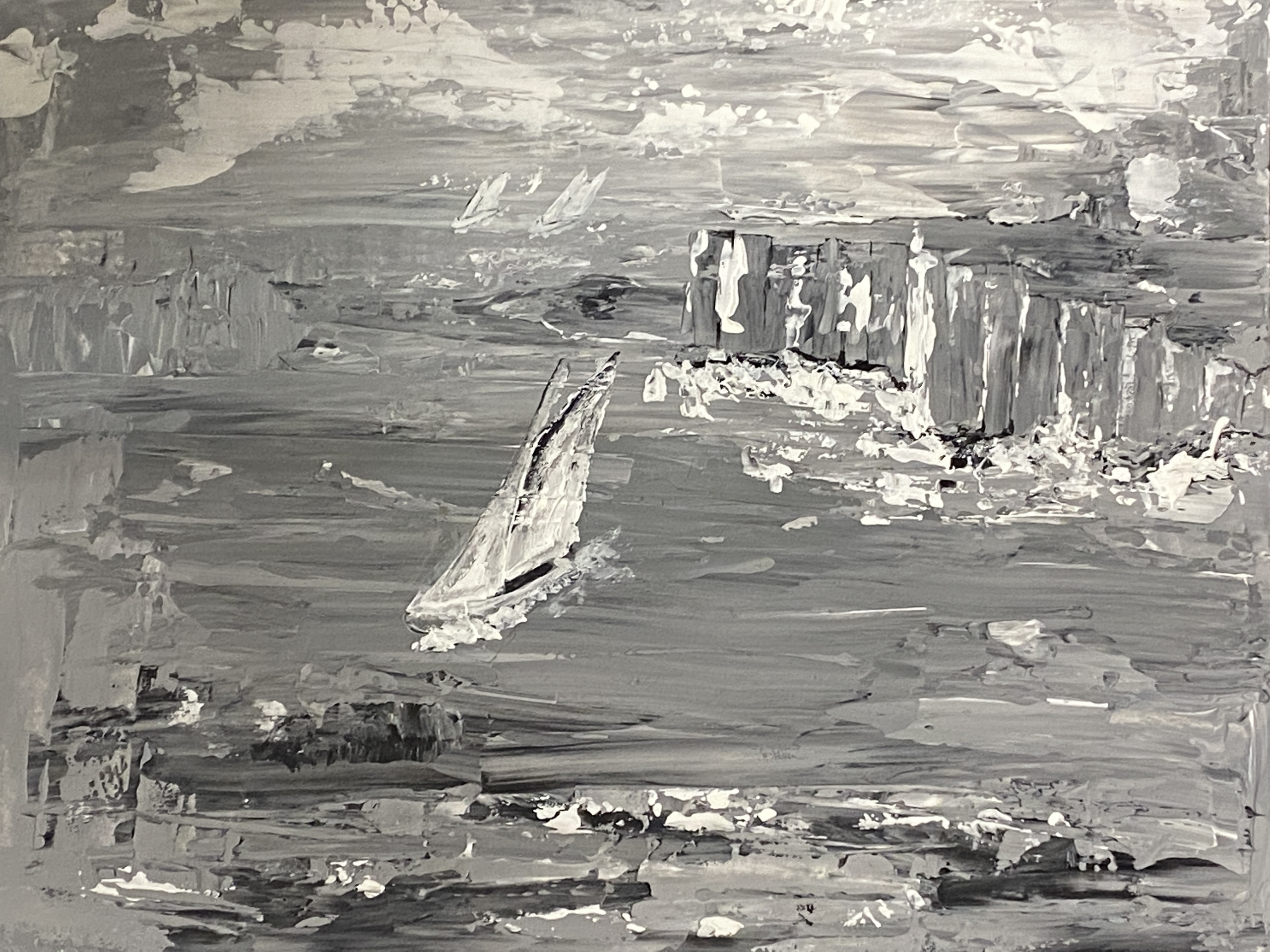 Wit Zwart Acryl Papier Wind Boot Zeegezicht Weer Zeilboot Stormachtig
