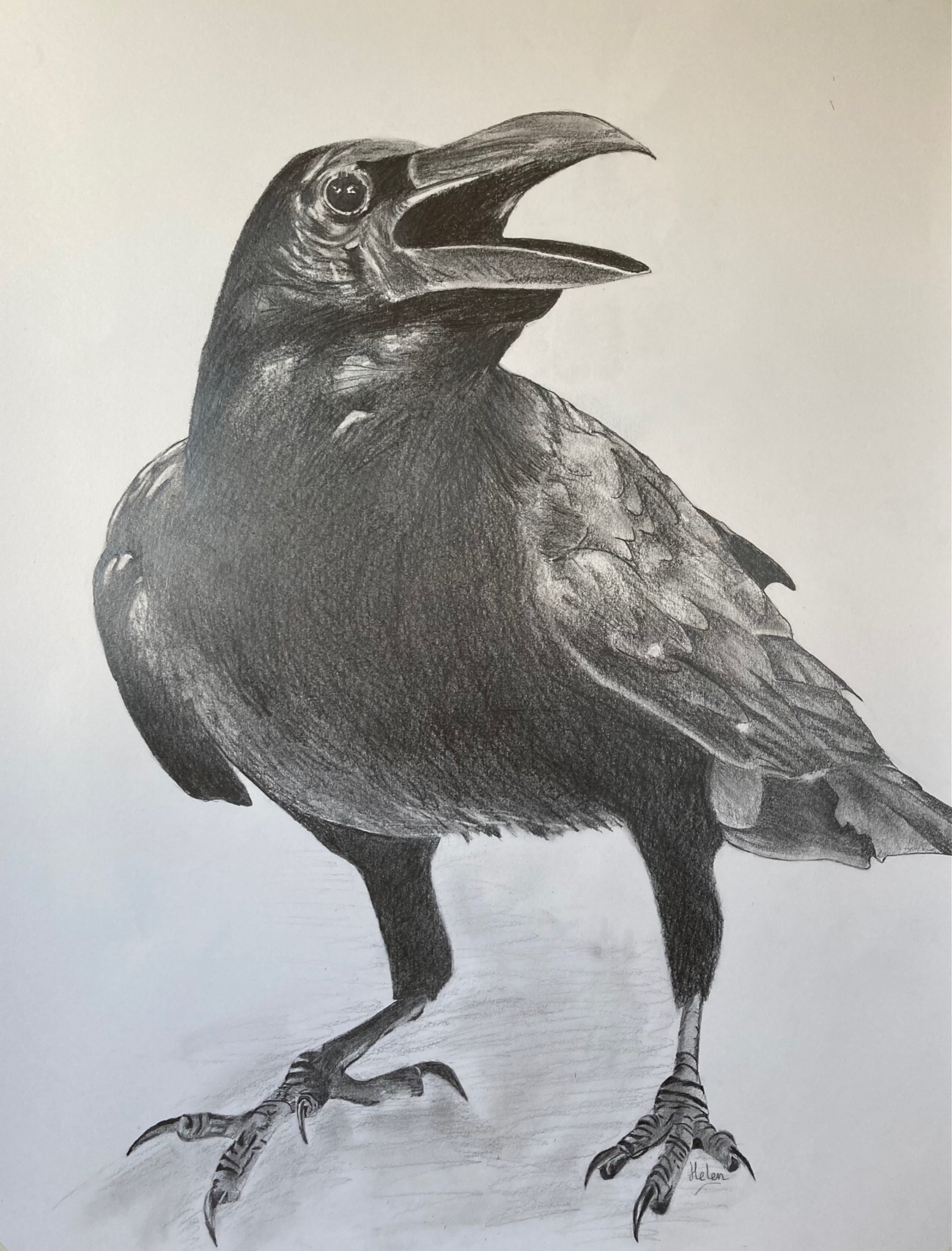 Kraai in grafiet op papier.