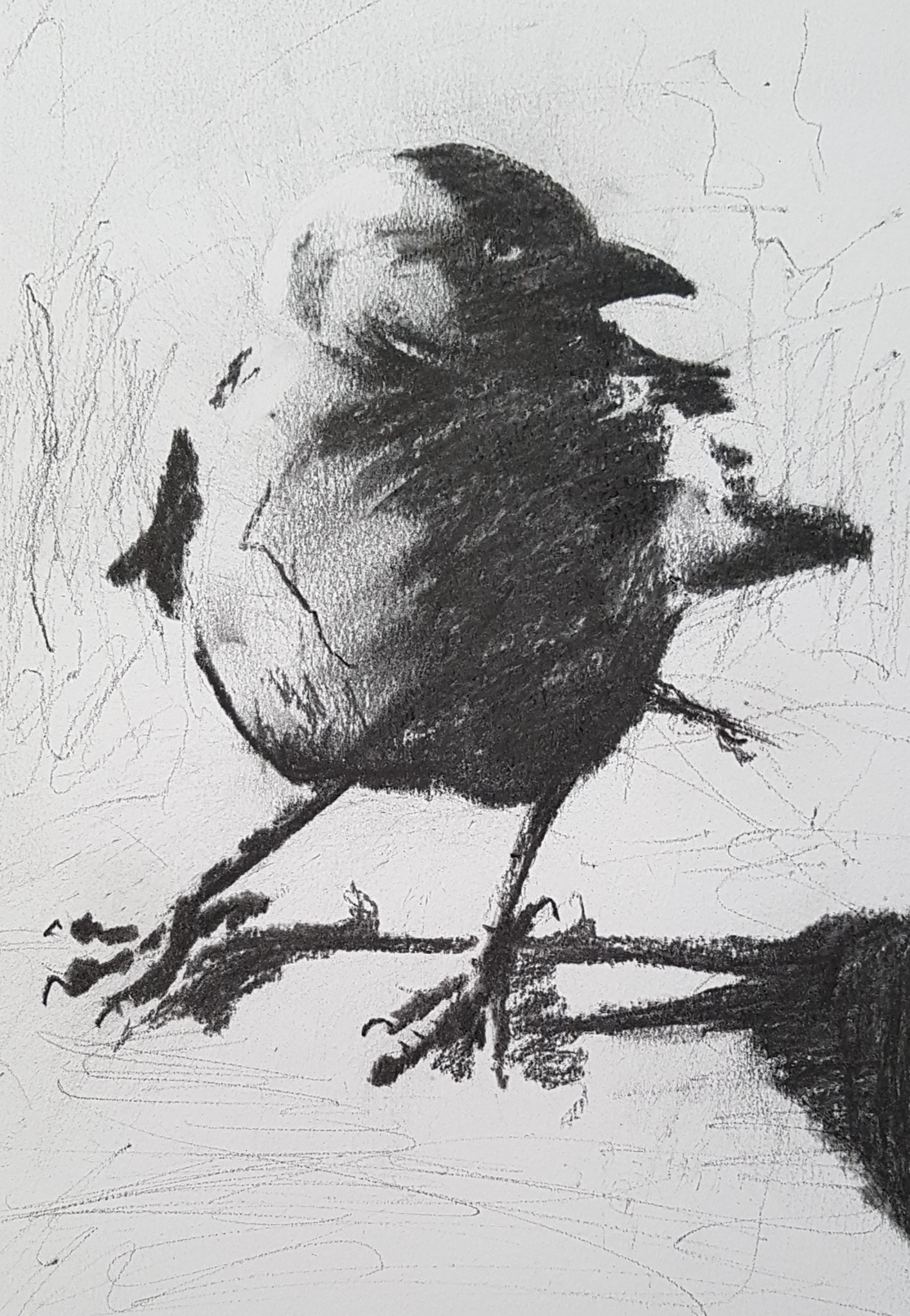 Zwart Vogel Tekening Houtskool Kauw Kauwtje Jackdaw Corvus Monedula Dohle