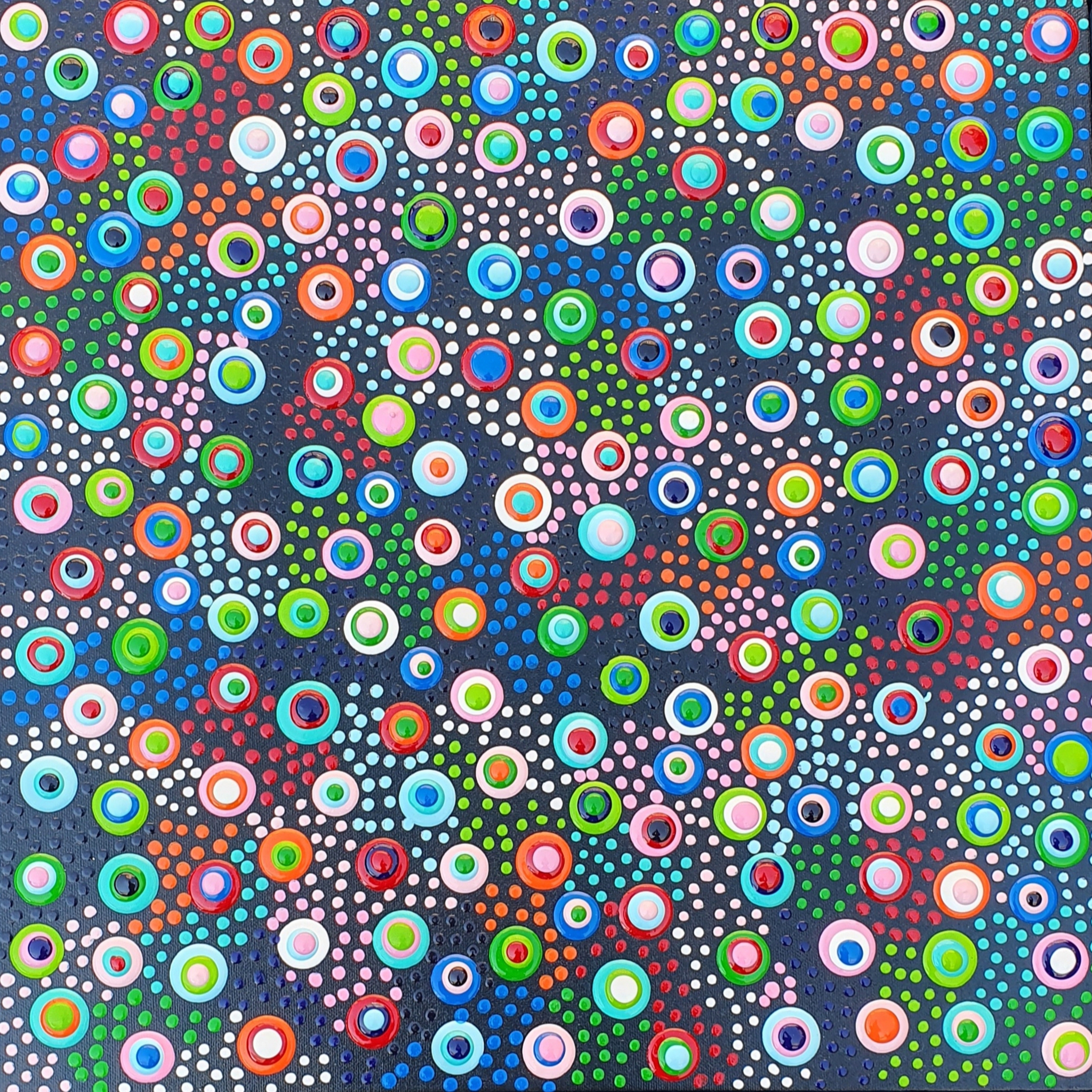 Dots, blobs schilderij in mooie, frisse kleuren. Doordat de blobs op het schilderij liggen, krijgt het een heel mooi 3D effect. Afgewerkt met een hoogglans vernislaag. Formaat is 50x50x4 cm. Wordt geleverd met een mooie zwarte 3D lijst. Inclusief de lijst is het 60x60 cm. Foto met lijst kan ik op verzoek toesturen. Rechtstreeks van de kunstenaar, dus de koper is eerste eigenaar. Handgesigneerd en met echtsheidscertificaat. Als het schilderij opgestuurd moet worden, dan wordt het goed verpakt in bubbeltjesplastic, piepschuim platen en een kartonnen doos.