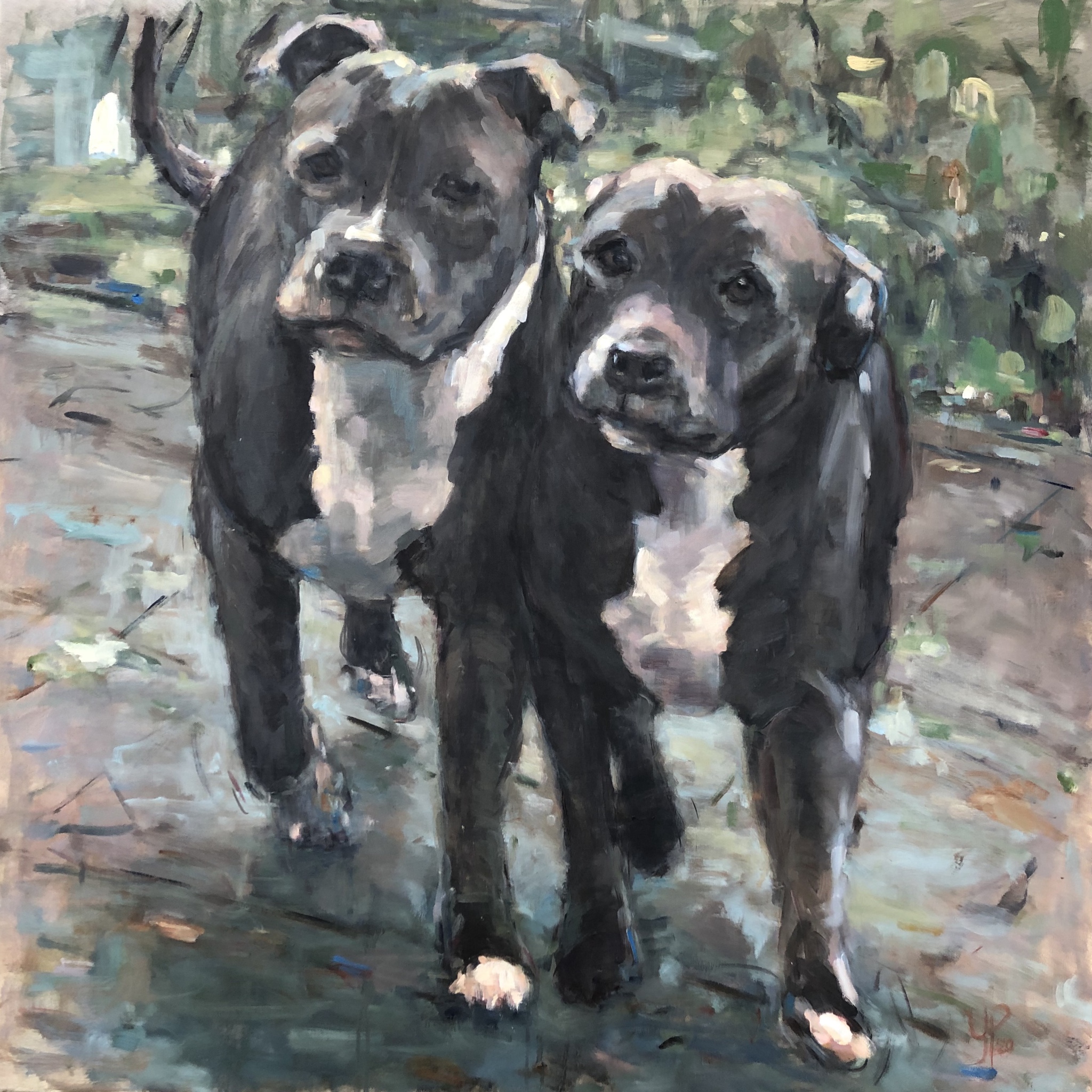Hond Tafereel Grijs Groen Vrolijk Honden
