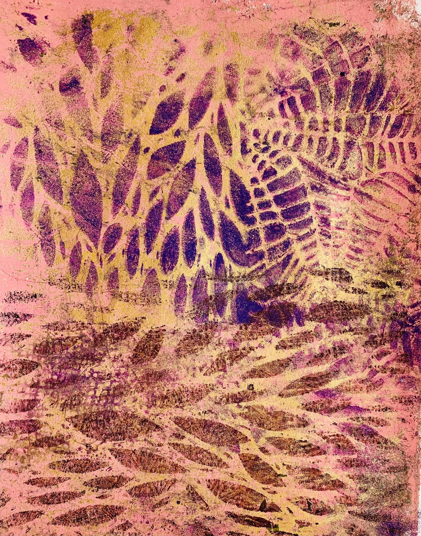 Monoprint Gelliplateprint Oud Roze Klein Werk