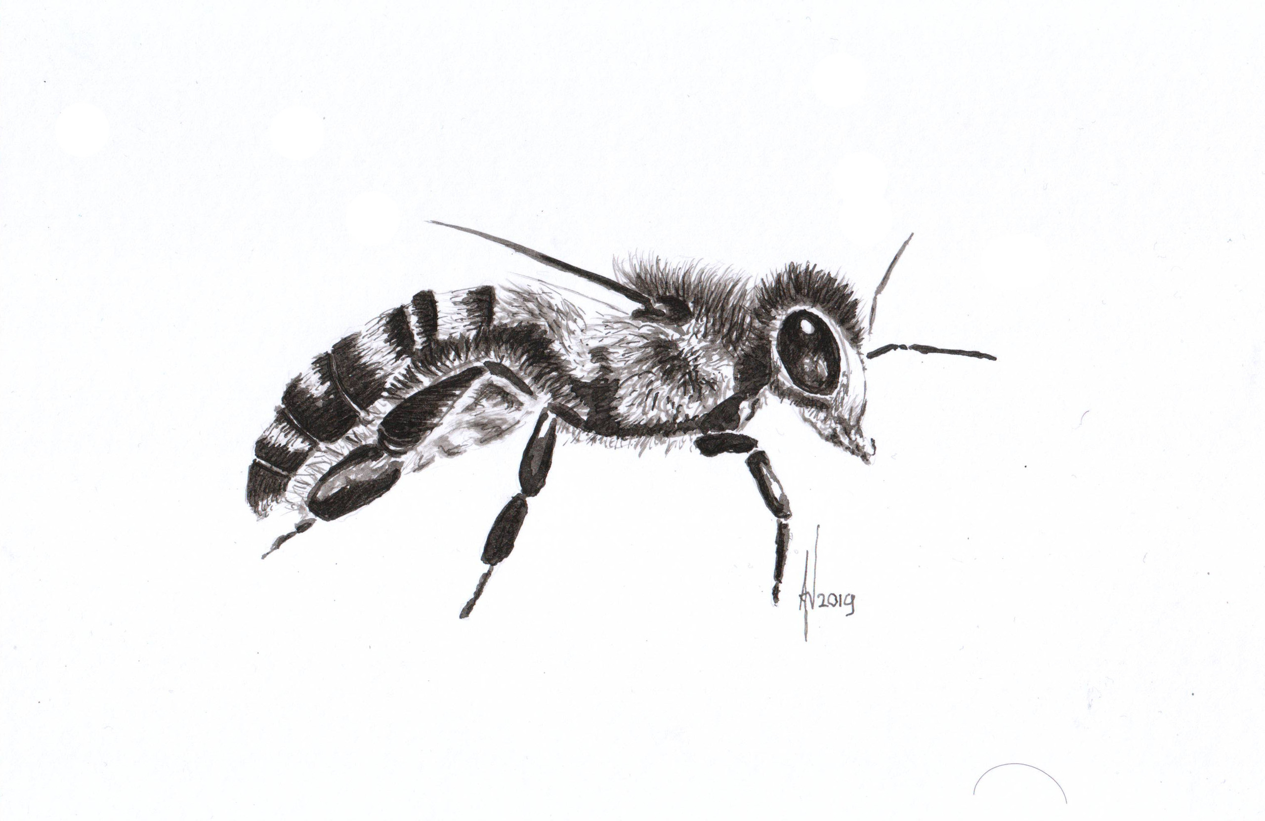 Figuratief Zwart Dieren Tekening Realistisch Natuur Inkt Realisme Bij Vliegen Lijn Zwartwit Fauna Gewassen Bijen Bedreigd Diersoort