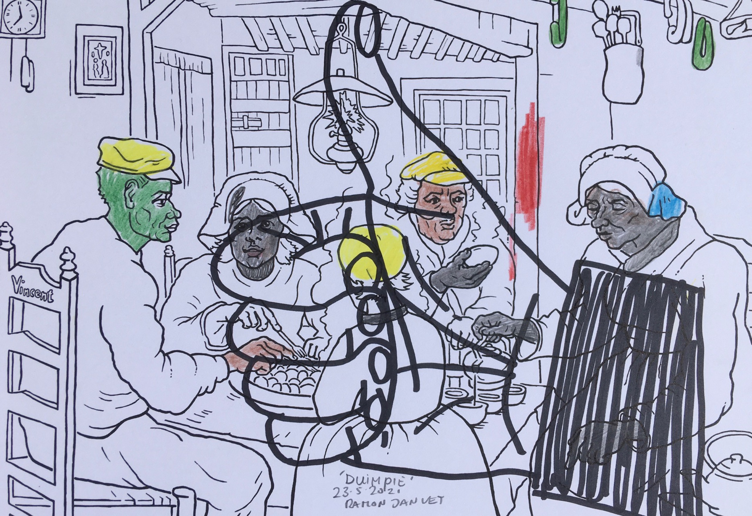 Aardappeleters Vet Kunst Vincent Van Gogh Amsterdam Holland Kunstwerk Tekening Schets Museum