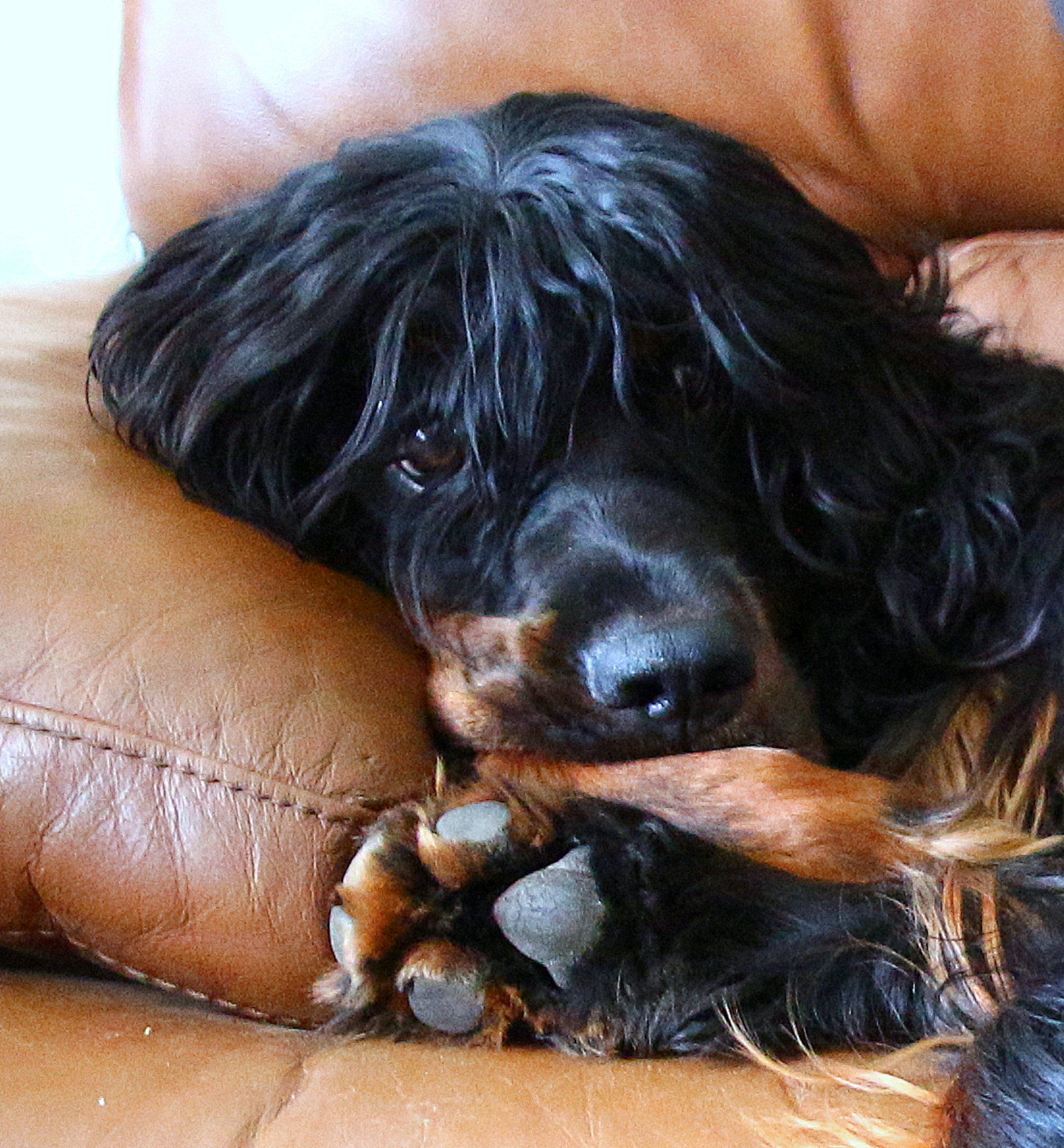 Gordon Setter "Ziva" '29 maanden oud' In de "relax-modus" Canon EOS 700D 1/40 sec. f/3,5 17 mm 2500 ISO