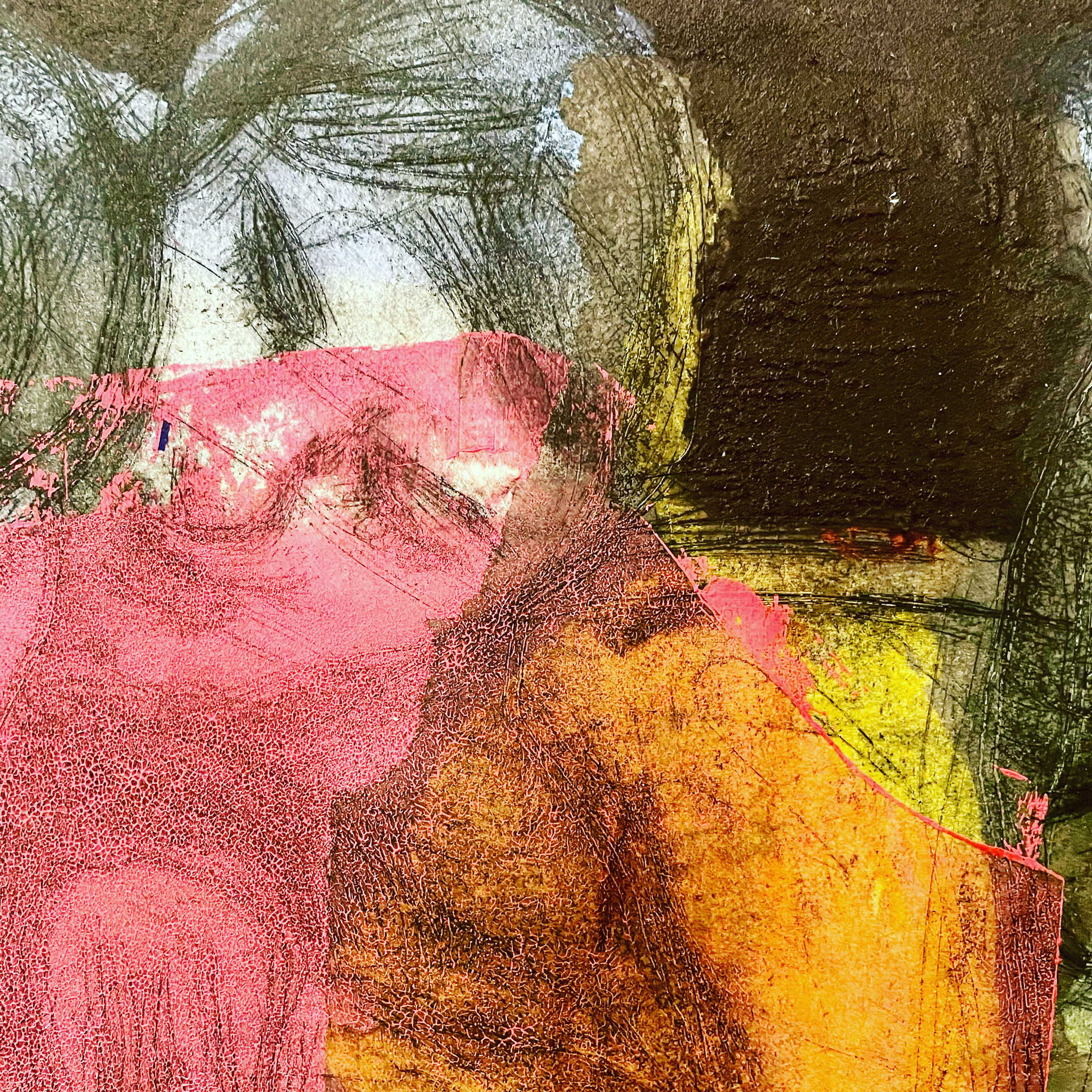 Ets, droge naald, aquatint. Uit mondkapjes-serie in het kader van de Corona pandemie.