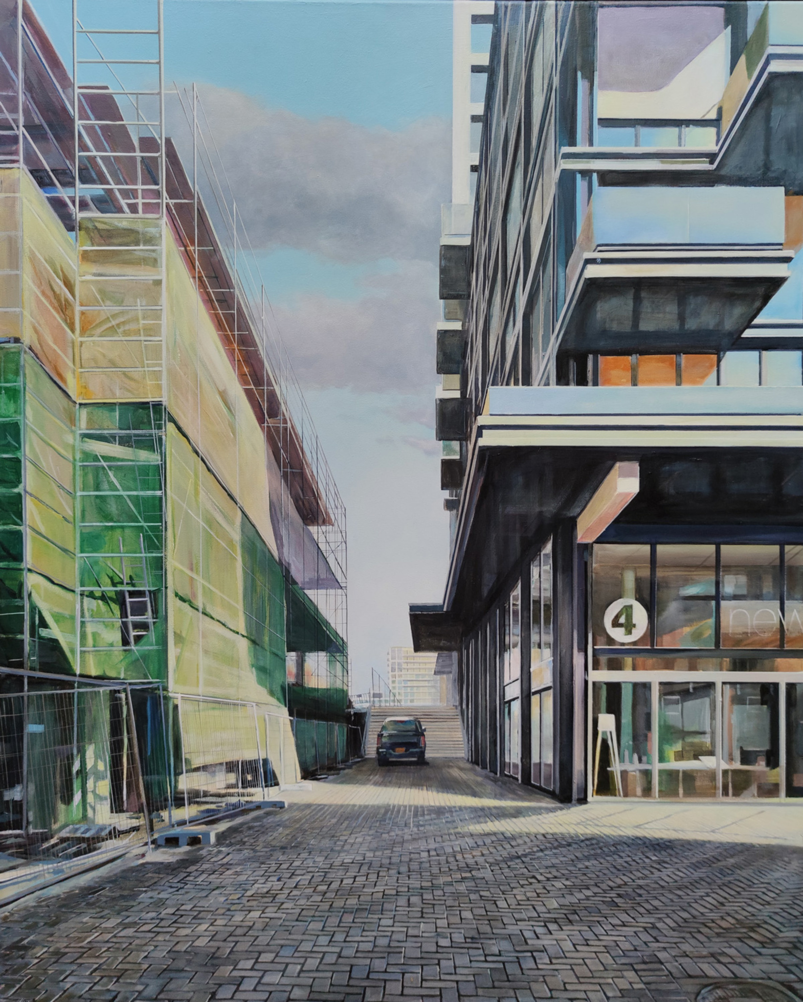 Ik schilder de stad: straten, gevels, etalages, interieurs.