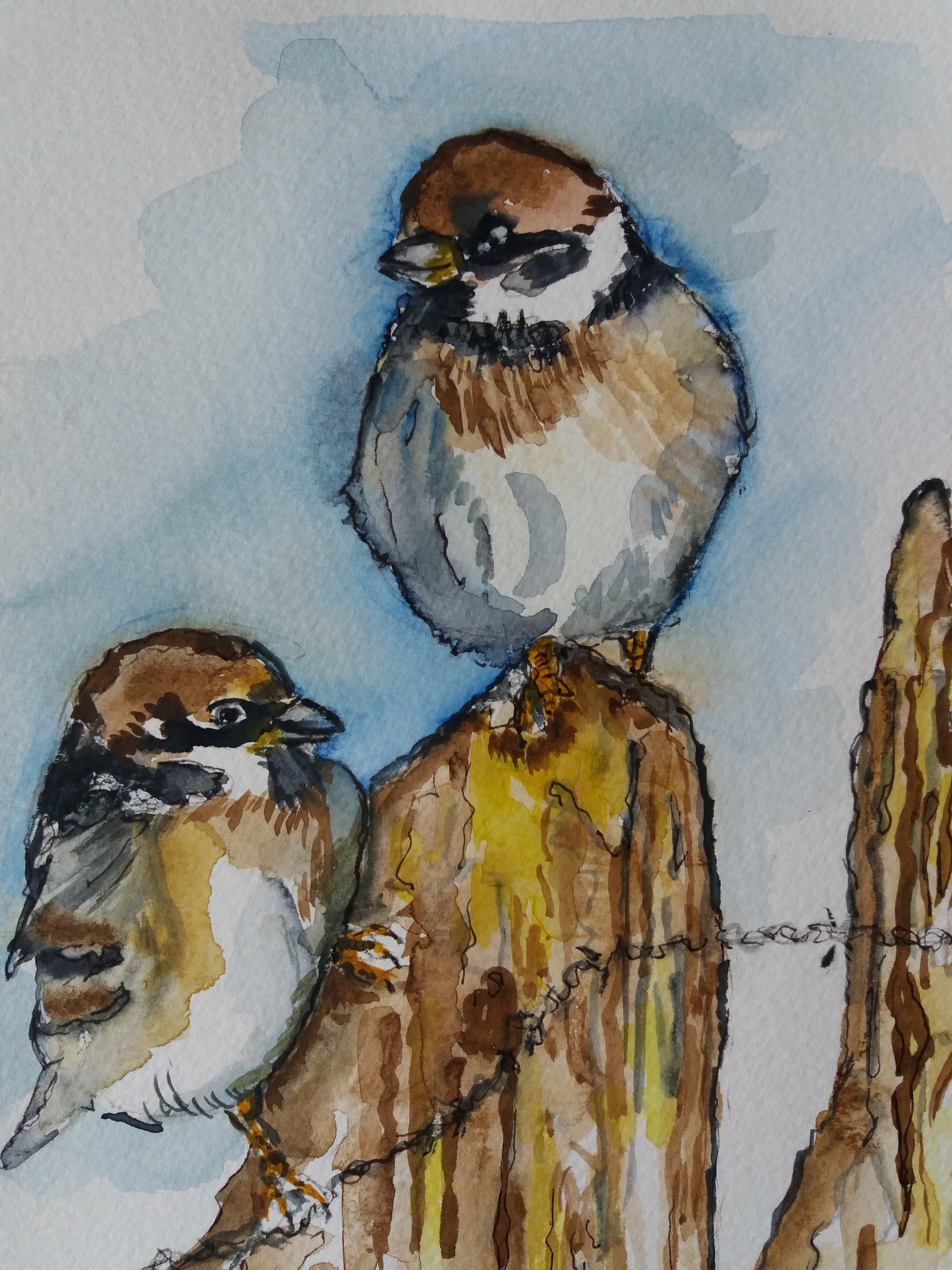 Vogel Bruin Aquarel Tak Boomstam Mus
