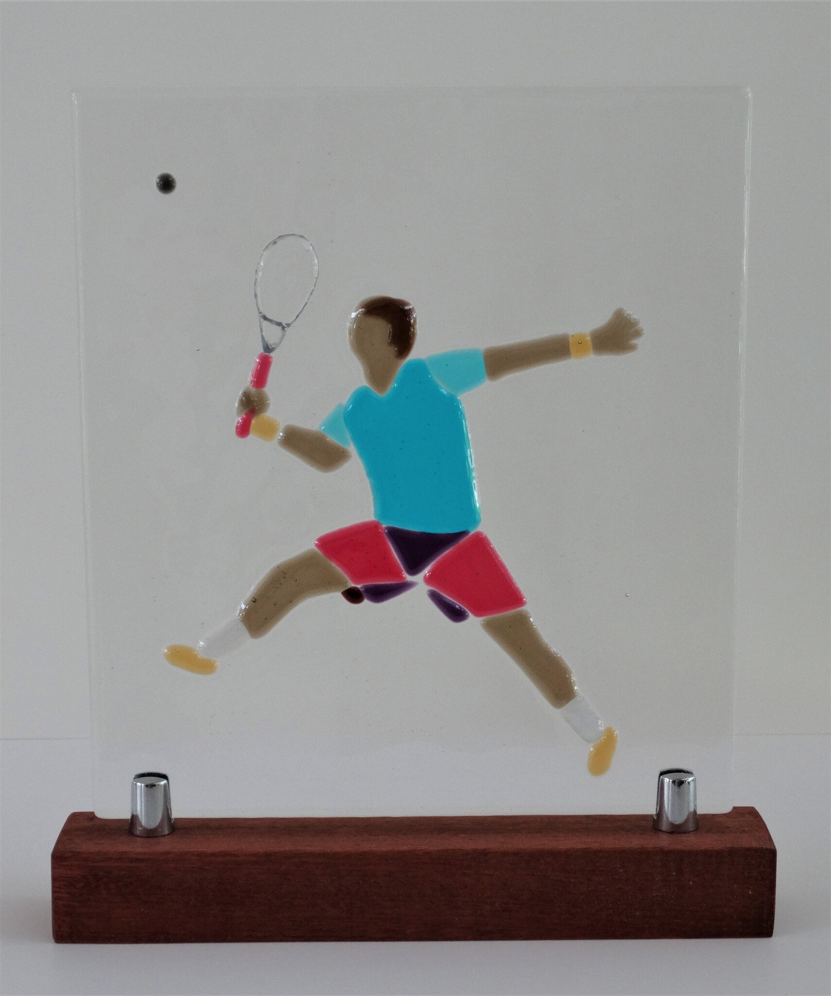 Squasher in beweging. In opdracht gemaakt. Glasfusing met Bullseye glas.