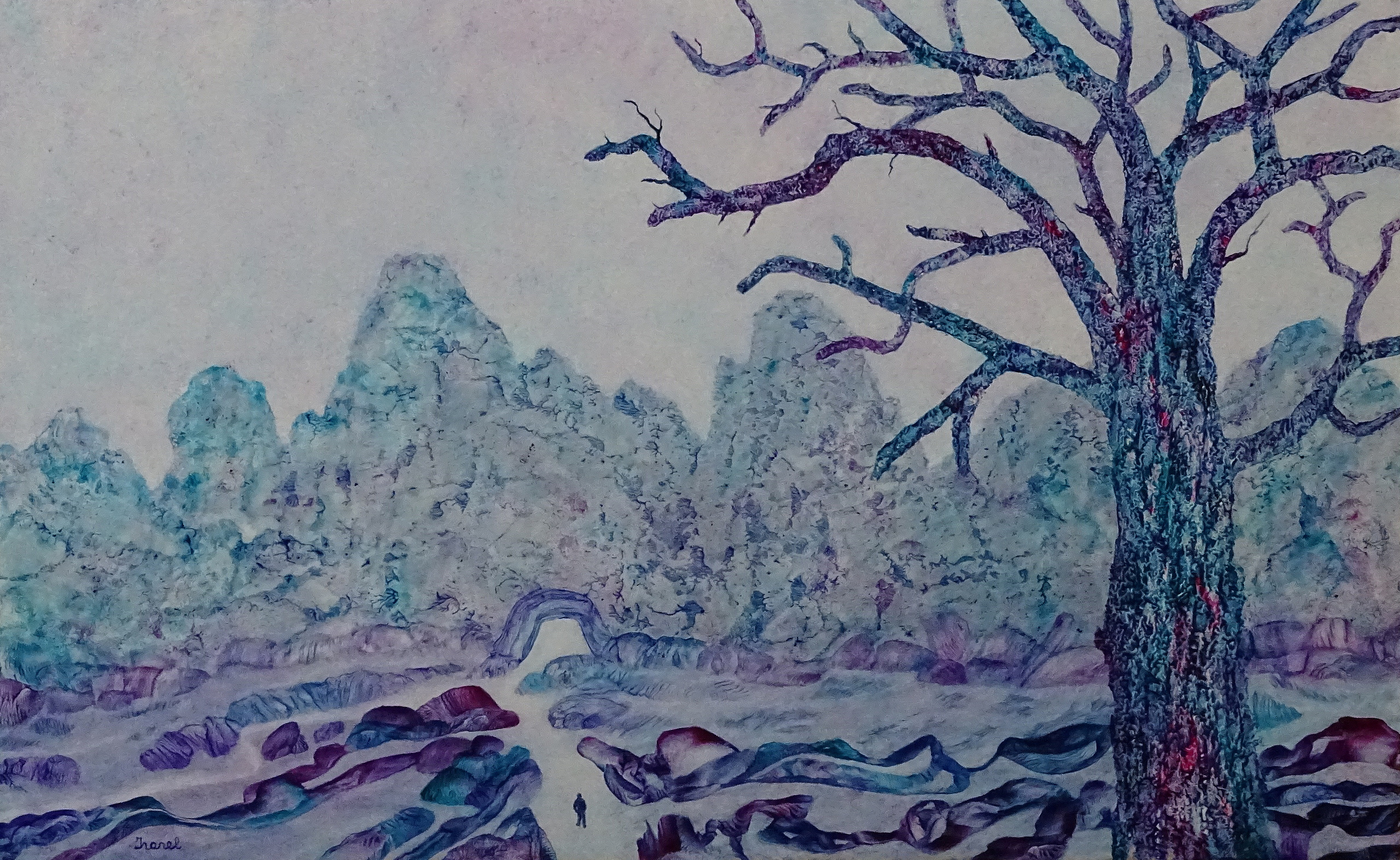 Landschap Paars Spiritueel Bergen Boom Turquoise