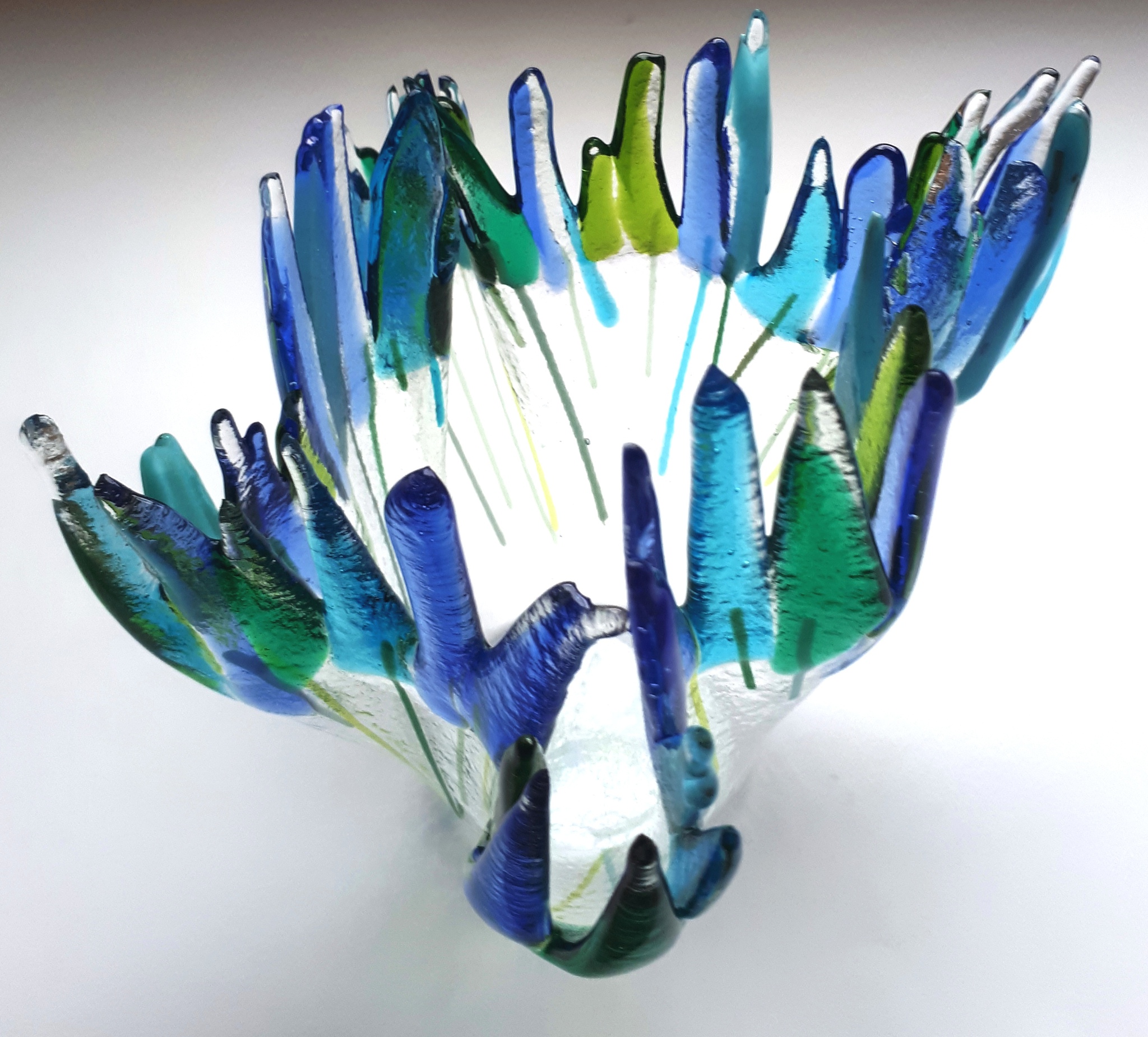 Blauw Glas Blue Glaskunst Glasfusie Glass Glassart Glassfusion Scheltema Louky Loukyscheltema Plooivaas Foldvase