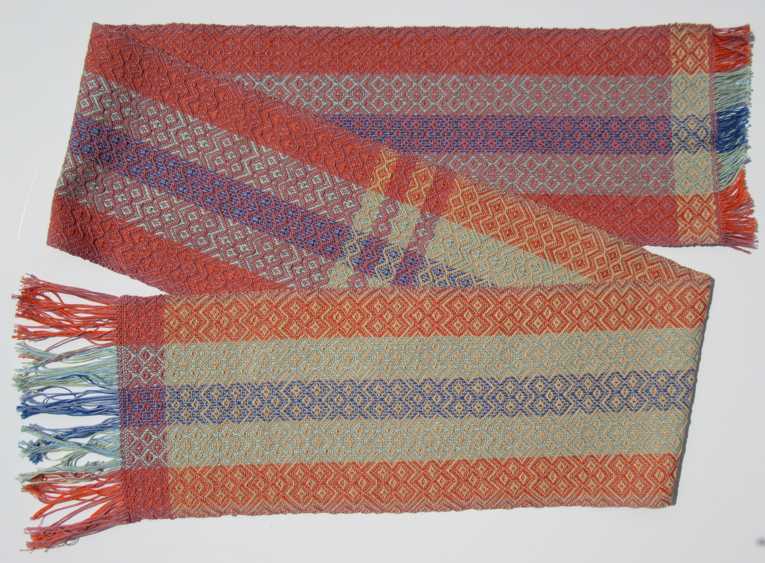 100% glanskatoen, een sjaal n.a.v. de online cursus van tien chiu uit san francisco en janet dawson uit canada 'stash weaving success'