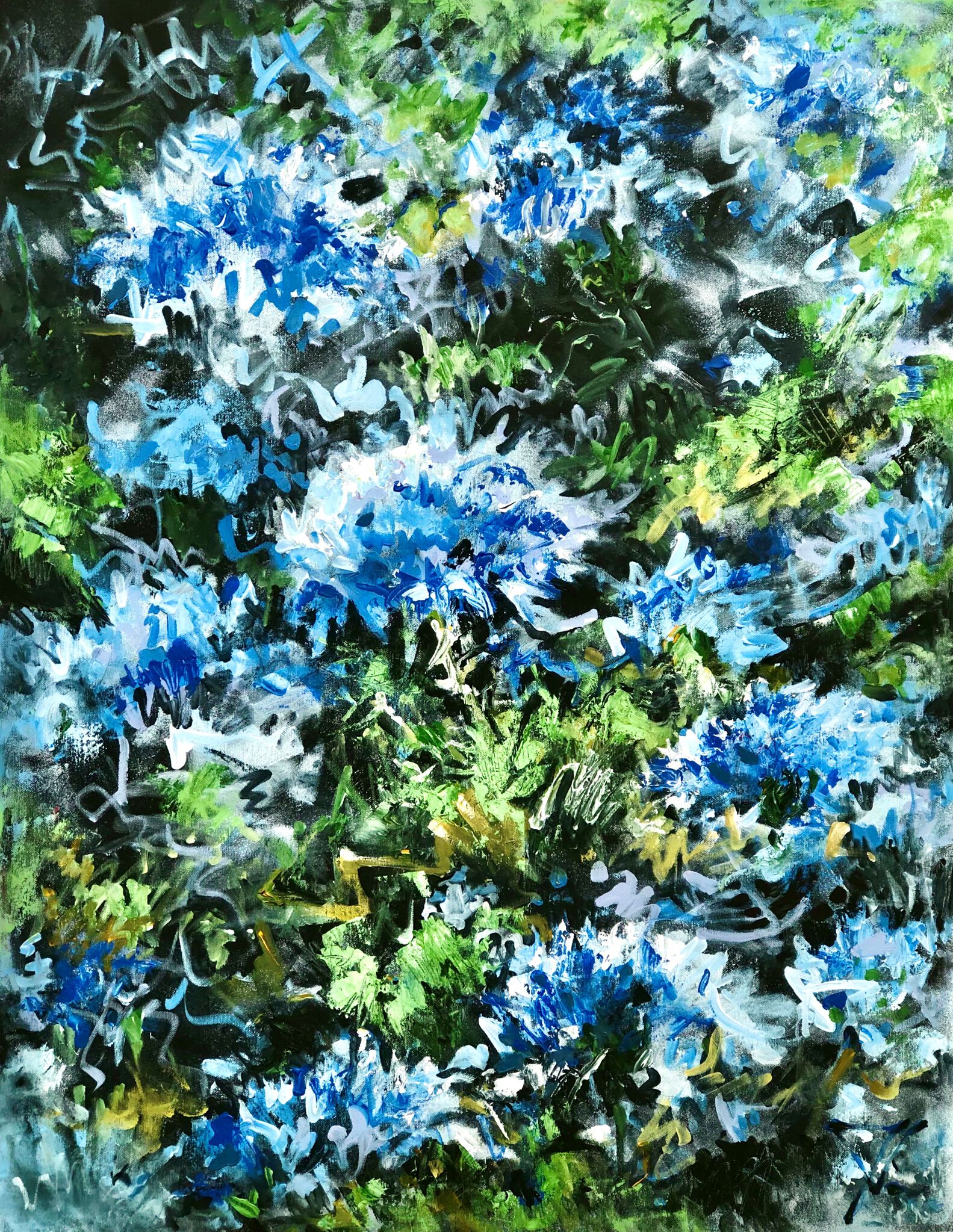 Een expressief semi abstract bloemenschilderij waarin de frisheid van een zomers veld vol blauwe korenbloemen tot leven komt. Heldere blauwtinten domineren de compositie, ondersteund door frisgroene accenten en lichte, bijna dansende penseelstreken. Het werk straalt lichtheid en natuurlijke energie uit – een ode aan zomerse eenvoud en veldbloemen in hun meest pure vorm. Over het werk: gesigneerd · acryl op canvas · opgespannen op stevig frame · meegeschilderde zijkanten · klaar om op te hangen Bij vragen neem gerust contact met mij op →