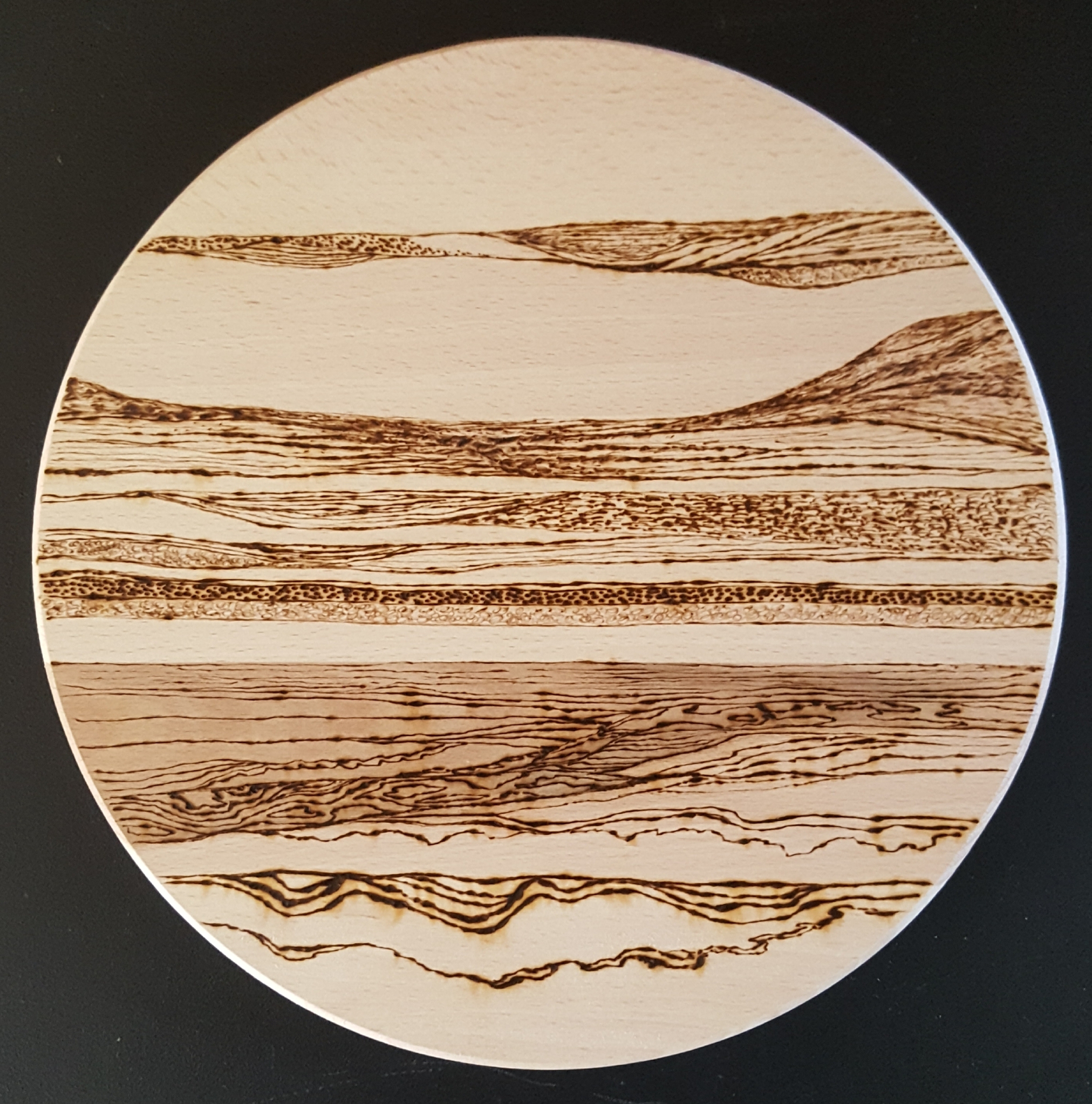 pyrografiewerk op beukenhout. (houtbranden)