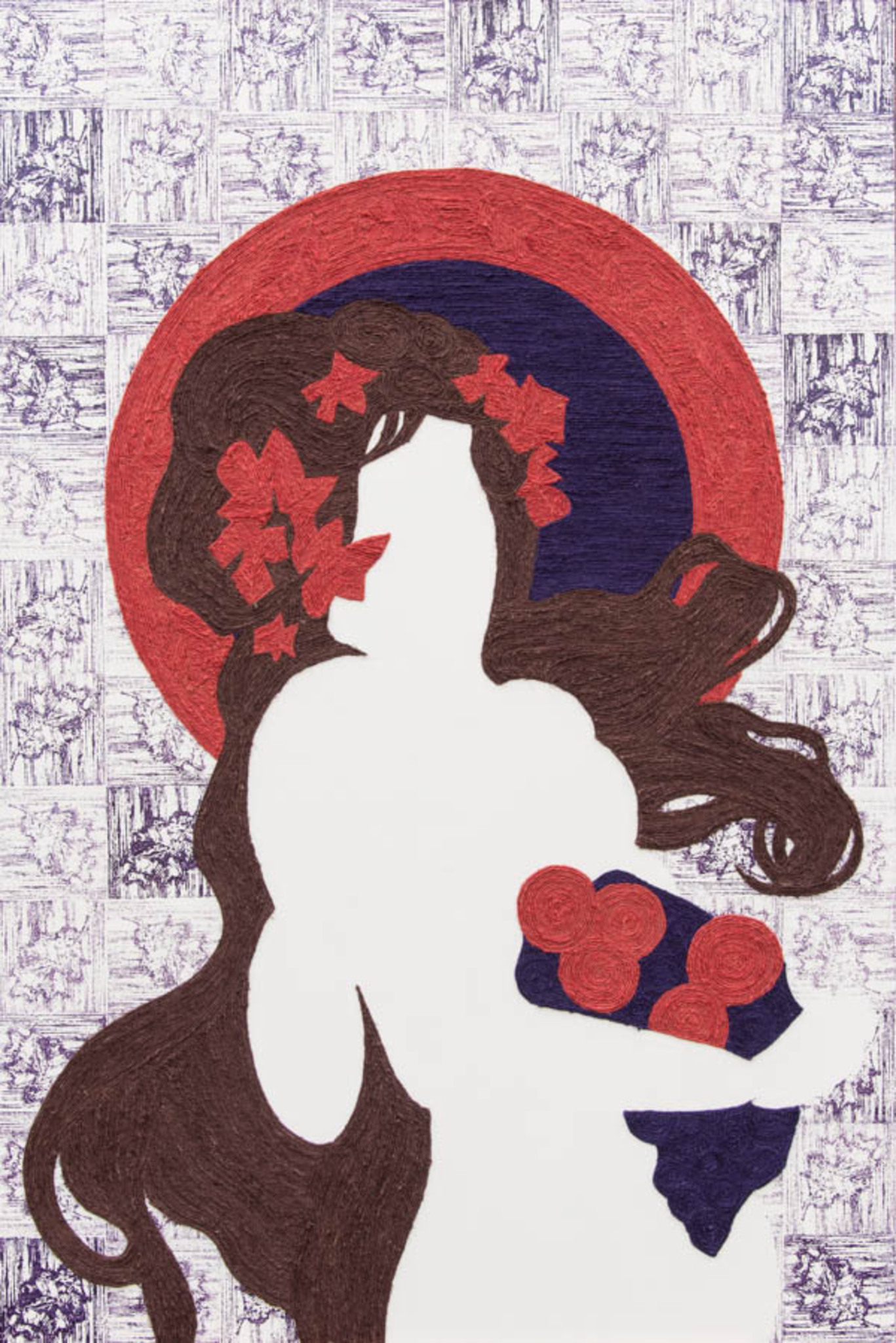 Wit Rood Paars Vrouw Portret Herfst Blad Touw Appels Print Jugendstil Druiven Herfstblad Vlastouw