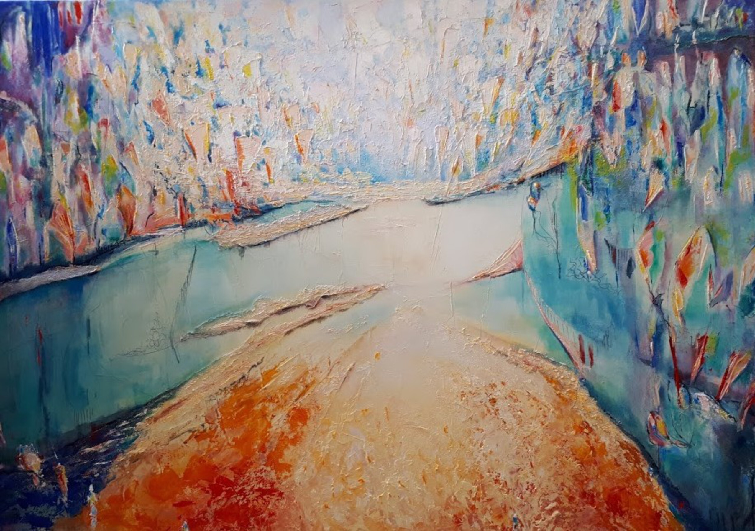 Van buiten naar binnen; een boeiende reis vol kleur en licht. Verwonder je over kleurrijke abstracte landschappen, ingetogen oosterse taferelen en vrolijke portretten in opdracht. Welkom.