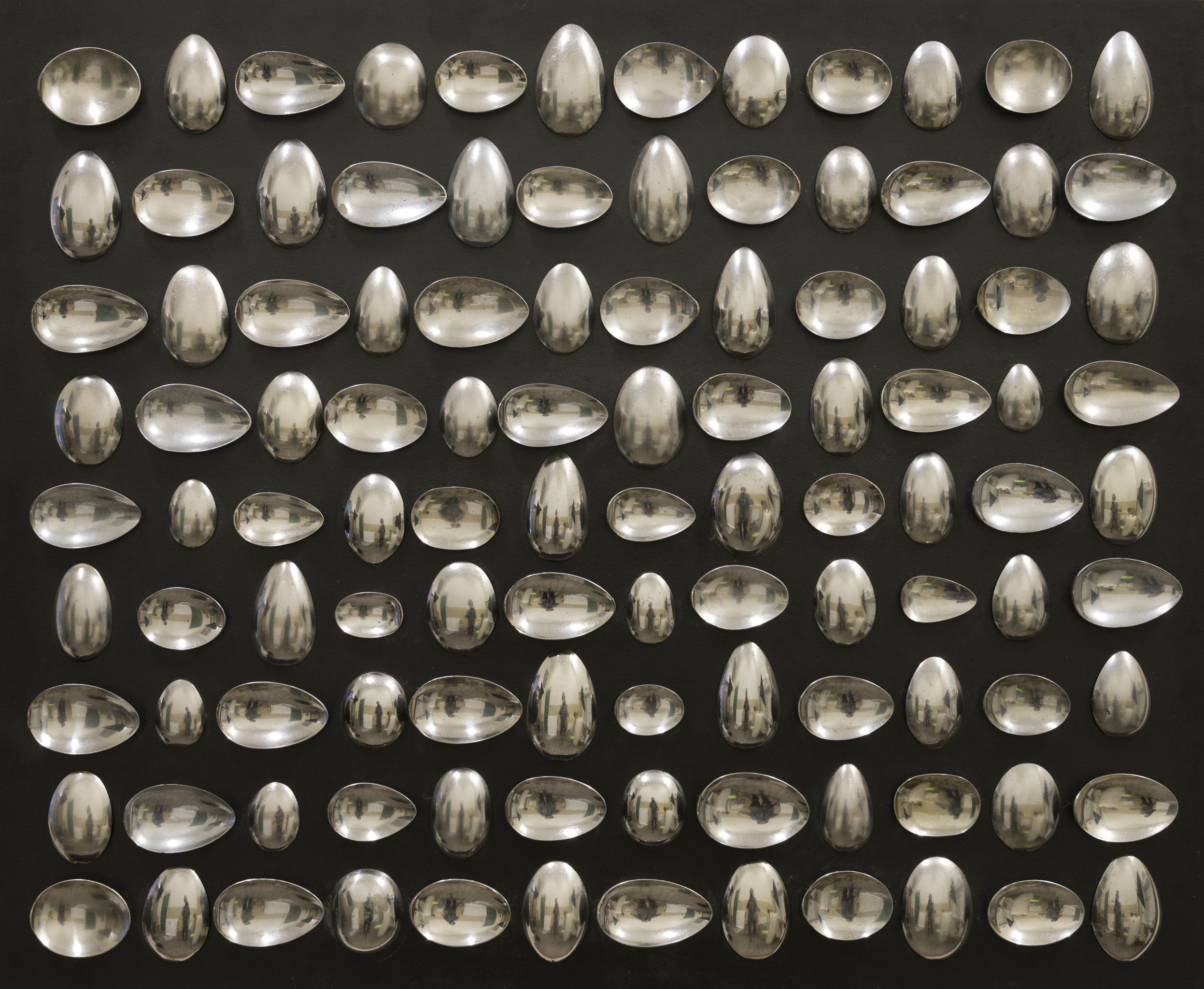 Van 108 lepels zijn de stelen afgehaald. Op een kunstof bord zijn de lepels bevestigd, 54 lepels met de voorzijde (hol) en 54 met de achterzijde (bol). De omgeving is in spiegelbeeld in de lepels zichtbaar en in de holle zijden ook nog op zijn kop.Alle lepels vormen samen een vierkant patroon van vertikale en horizontale lijnen maar ook van diagonalen. Thema's van Nico Kok zoals: beeld/spiegelbeeld, voorkant/achterkant, hol/bol, vierkant patronen,enz komen terug in dit werk.Op de achterkant is het werk gesigneerd.