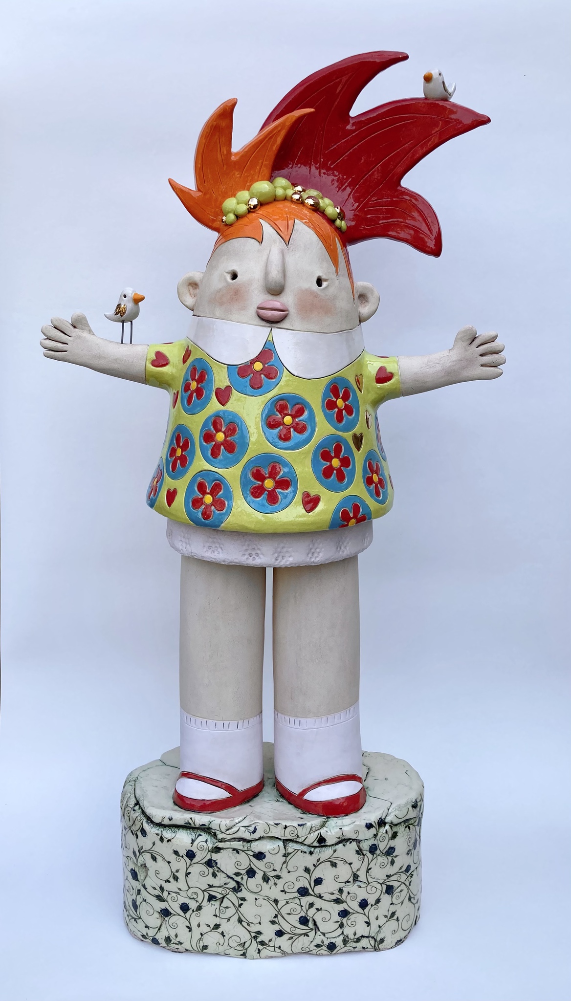 Bloemen Groot Vogeltjes Kleur Sculptuur Keramiek Cartoon Humor Schattig Beeldend