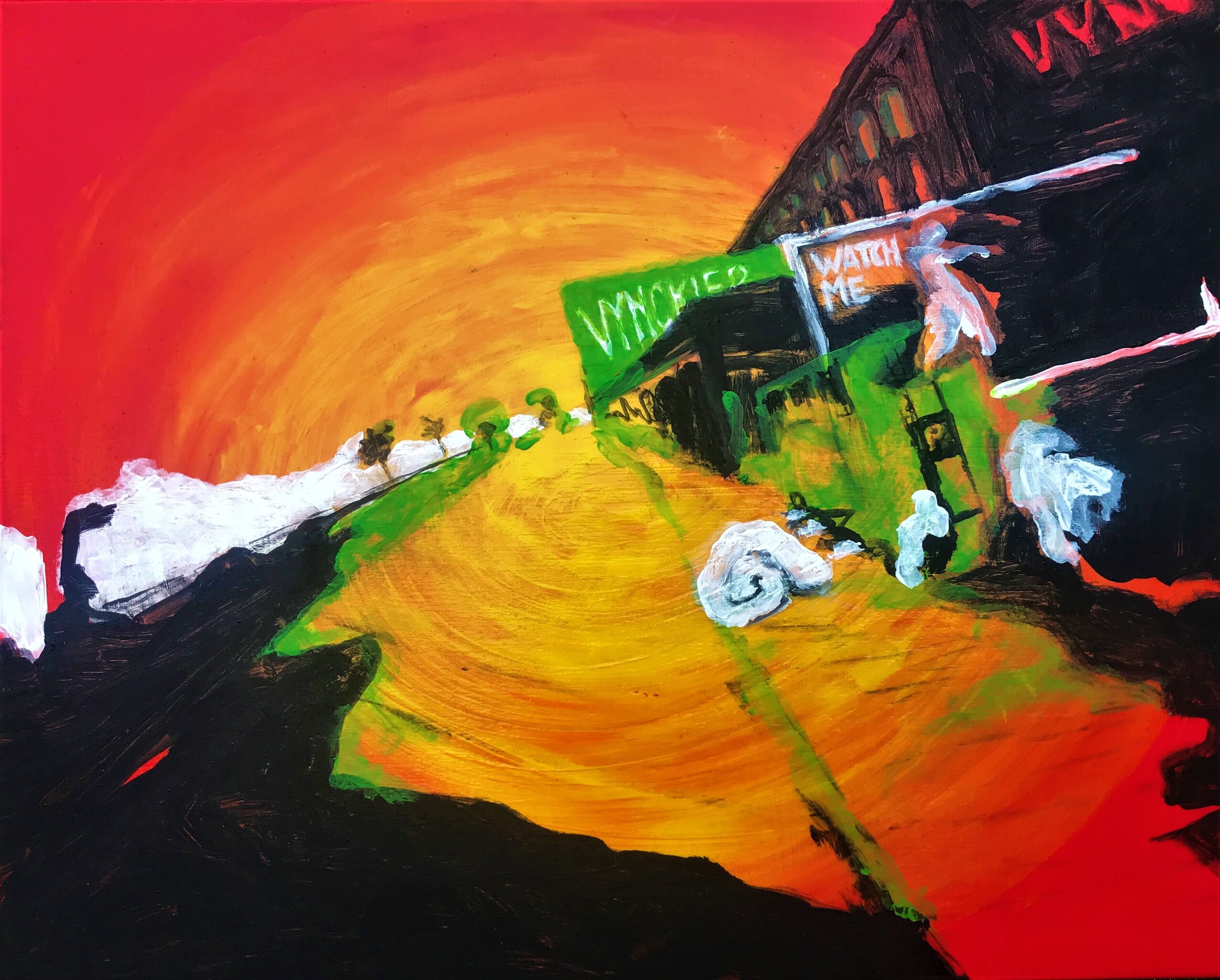 Schilderij Rood Geel Zwart Acryl Groen Zonsondergang Watch Container Me Gent Matras Vynckier