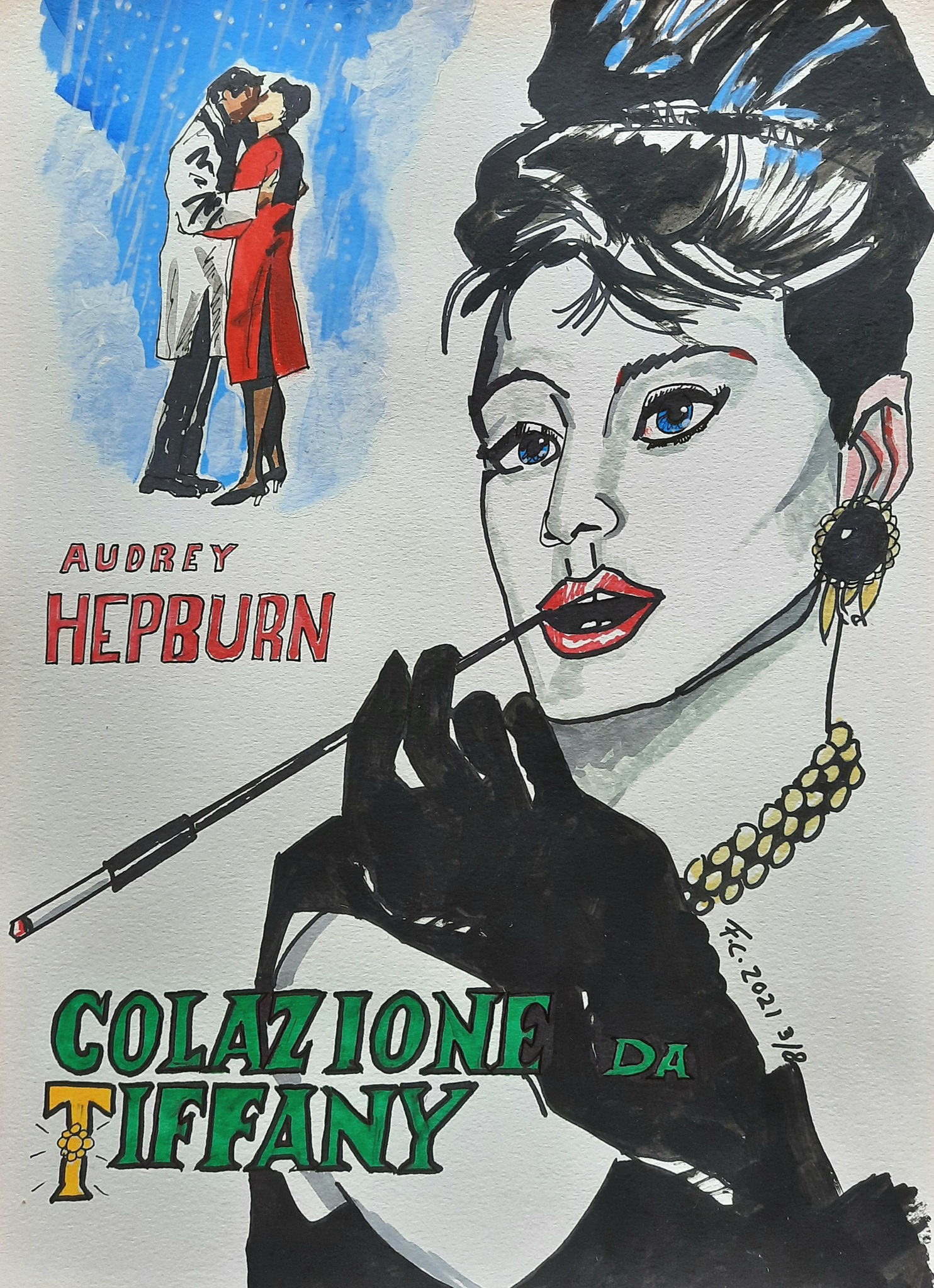 Film van Audrey Hepburn uit 1961. Naar een oude poster.