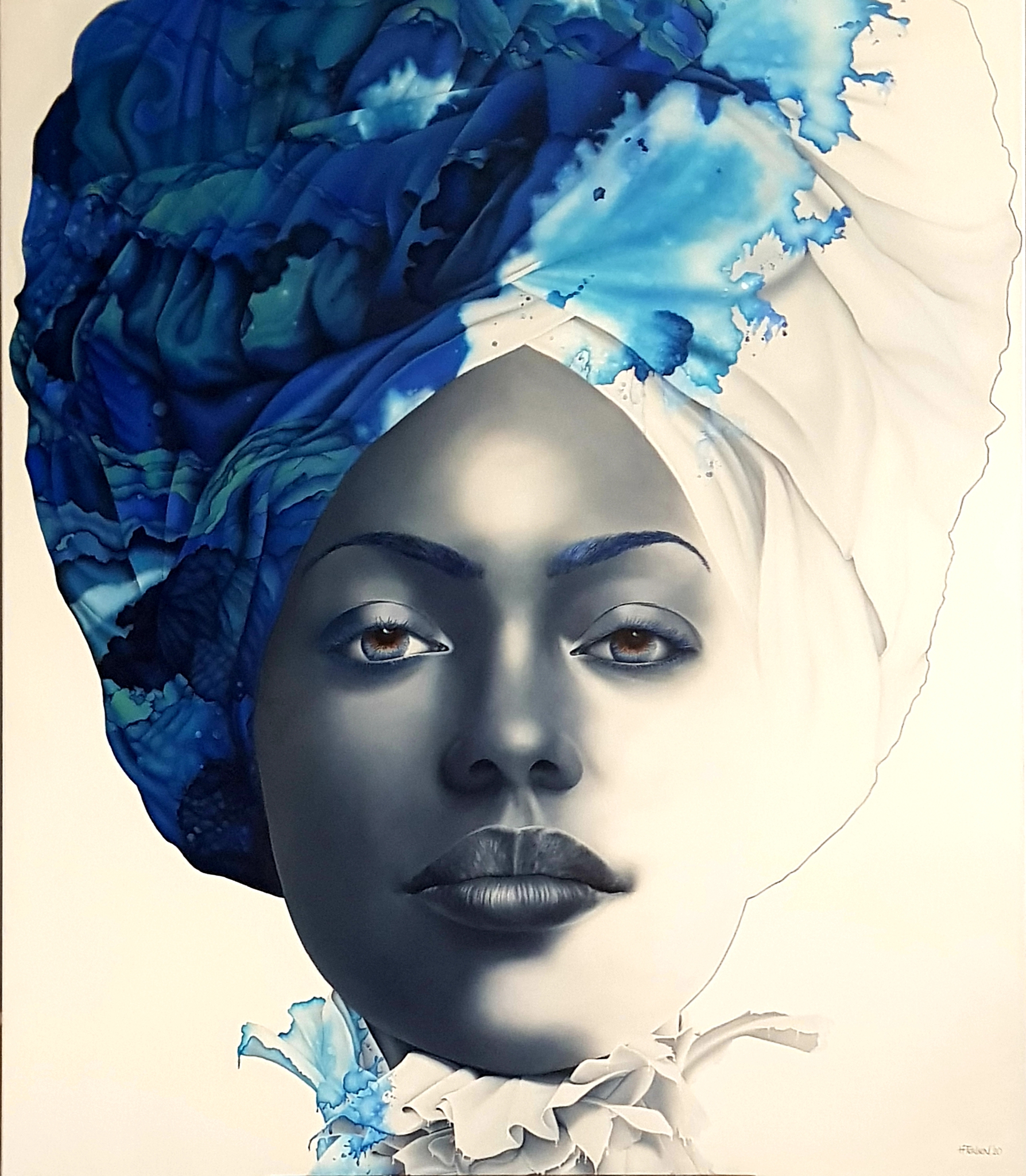De kunstenares vindt inspiratie in geschiedenis, legendes, politiek, liefde, kracht en diversiteit.Onbewuste associaties, filosofie en emoties, leiden naar een dynamische compositie.