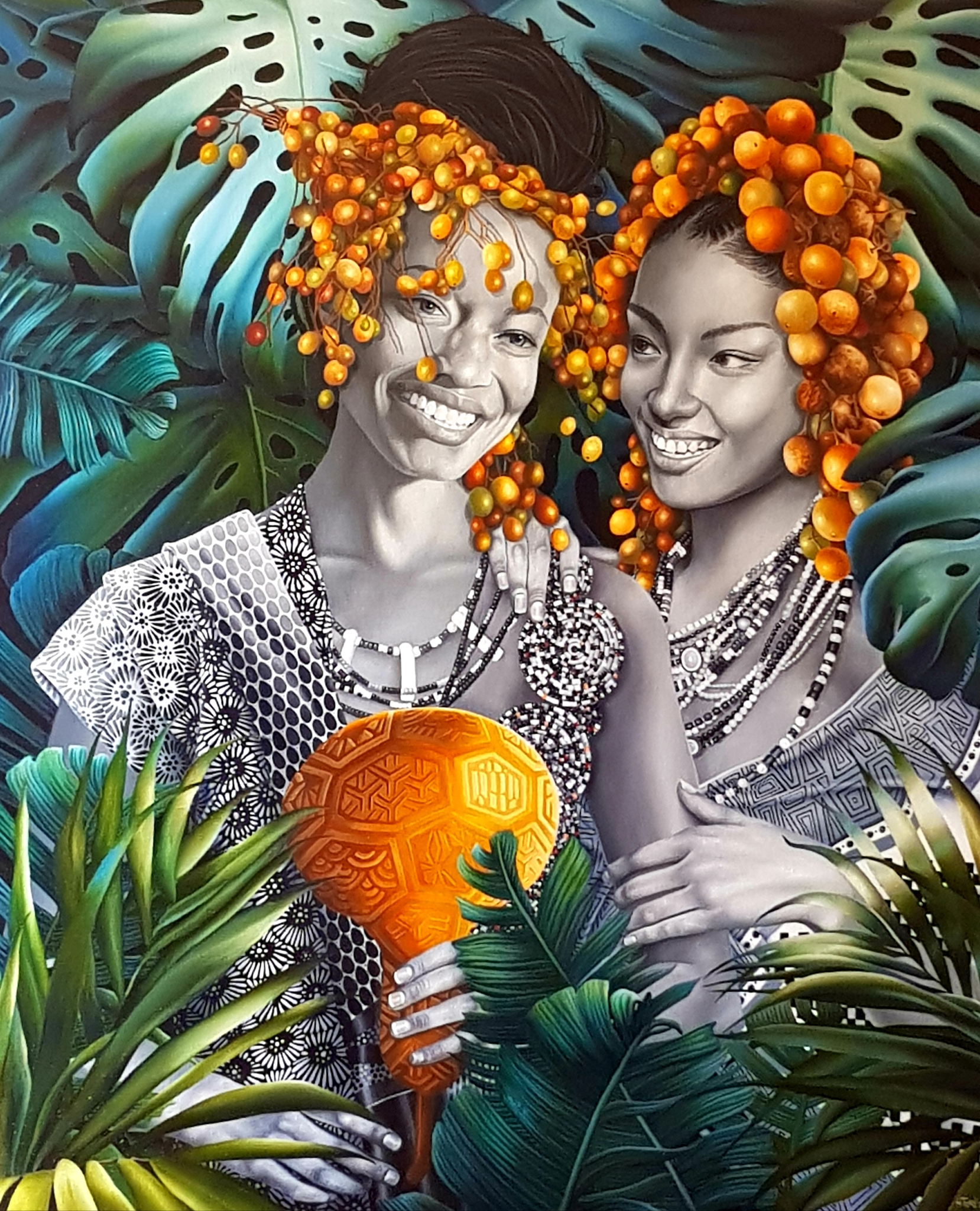 Twee afrikaanse vrouwen met kalebas Olieverf en Alkyd Verkrijgbaar als giclée (print op linnen) www.tresart.nl